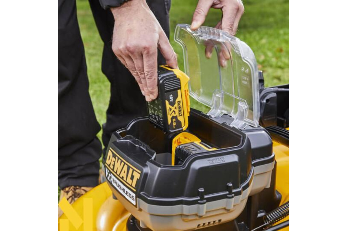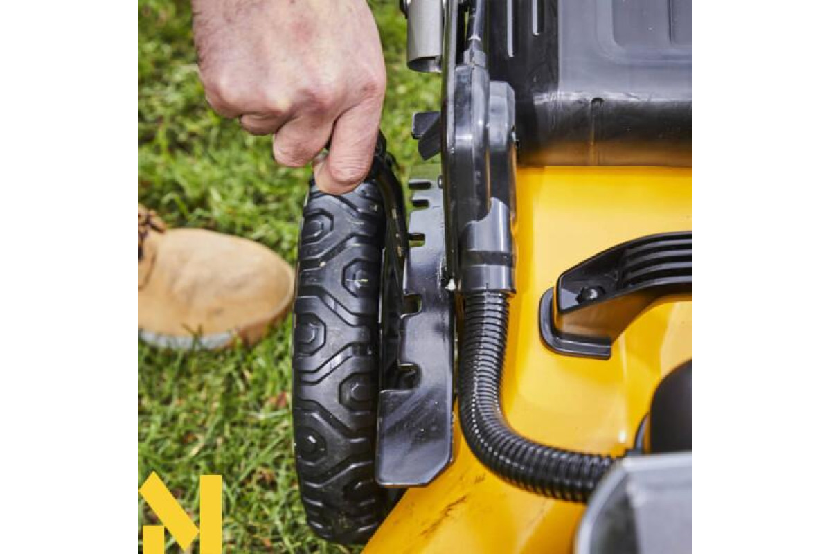 Кнопка включення живлення для легкого включення / вимикання і додаткового запобіжного вимикача для додаткової безпеки. Сумка для збору мішків з тканини високої щільності 55l для безрецептурного естетики галявини. Легко знімати через ручки і зберігати. 5 важелів регулювання висоти (25, 38, 57, 74, 86 мм), який швидко і легко налаштовує всі колеса для різних застосувань. Вторинні і передні ручки для перенесення дозволяють легко транспортувати і складати за ручку / стопорні колеса для поліпшення зберігання і транспортування.