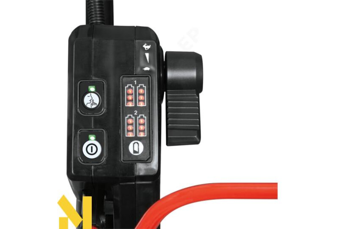 Косарка має чотири слоти для батареї для збільшення часу роботи, вона використовує дві батареї одночасно, комплект батарей можна перемикати вручну за допомогою ручки. Працює до 50 хвилин від чотирьох батарейок.