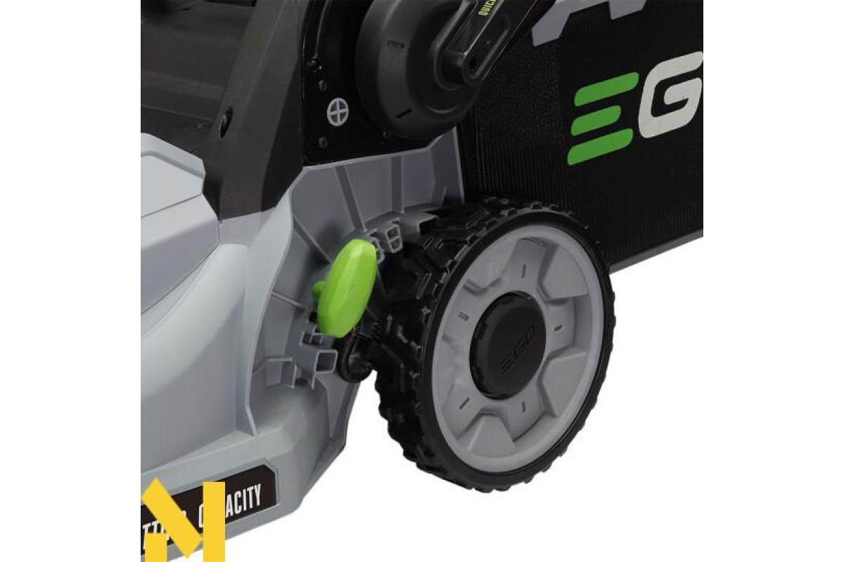 - Центральне регулювання висоти косіння - кілька положень дозволять налаштувати рівень зрізу рослинності для конкретної зони. Висота скоса здійснюється одним важелем, який фіксує кожне колесо в потрібній позиції, причому цей процес не вимагає зупинки двигуна.