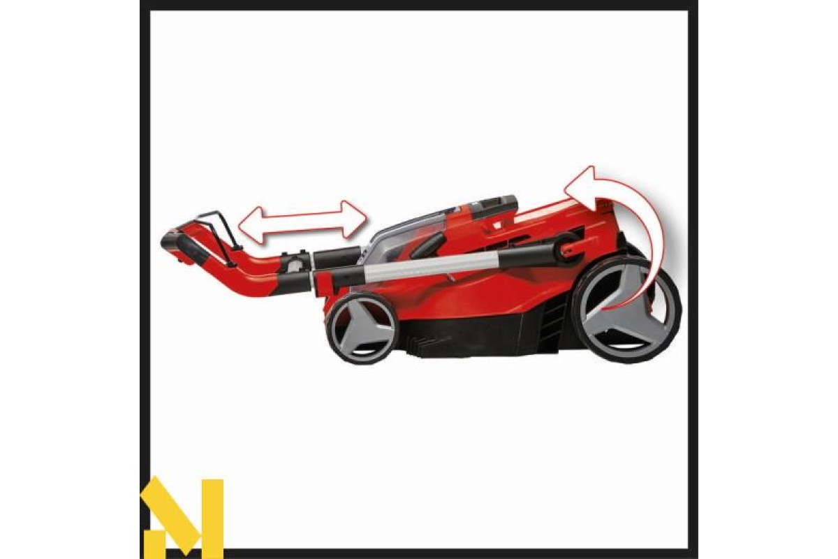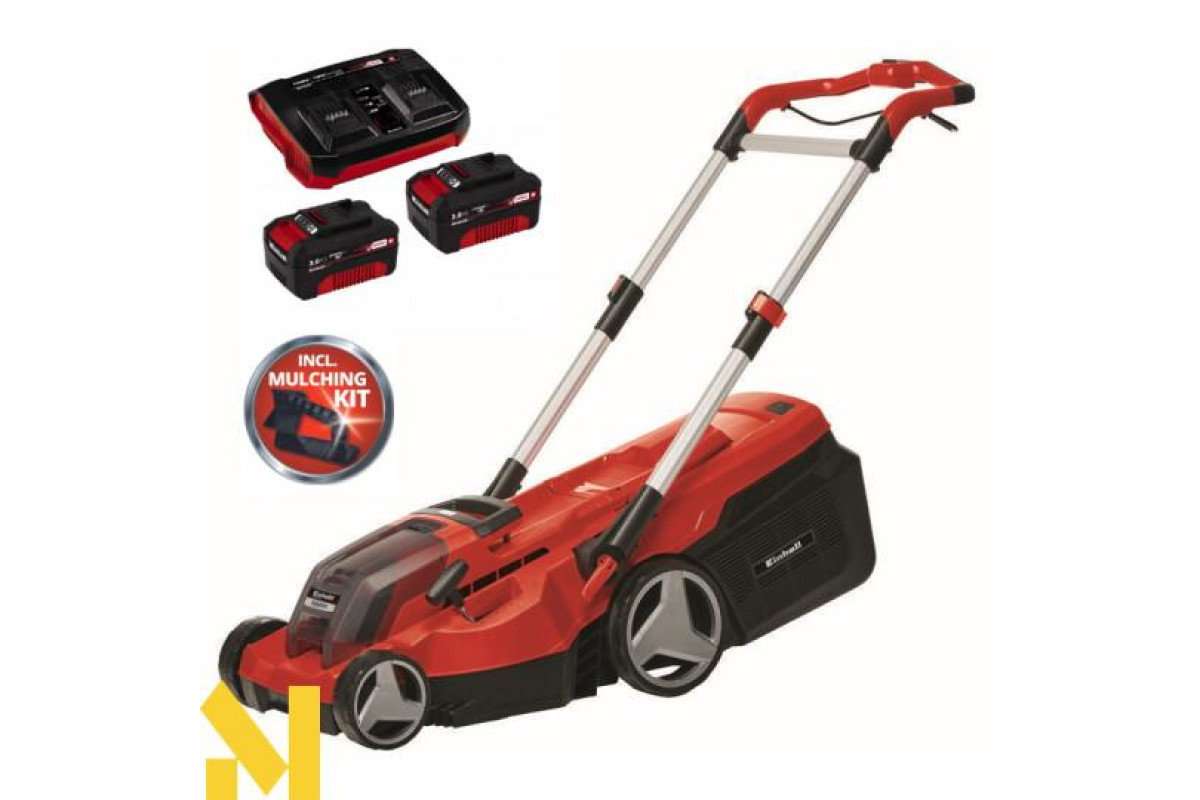 Потужна газонокосарка Einhell Rasarro 36/38 дозволяє зробити скошування трави легким і тихим. Рекомендується для газонів, площею до 450 м². Газонокосарка містить 2 гнізда для установки 18V акумуляторів. У комплекті з косаркою йдуть 2 АКБ Power X-Change, ємністю 4.0 Ah кожен, а також швидкий зарядний пристрій для акумуляторів. Батареї Power X-Change можуть використовуватися у всіх пристроях Einhell, які підтримують цю технологію. Індикатор заряду батареї використовує три світлодіода, щоб користувач завжди бачив рівень заряду батареї. У косарці встановлений безщітковий двигун, який не потребує обслуговування. 6 рівнів висоти покосу газону дозволяють встановлювати висоту від 25 до 75 мм. Ширина покосу газонокосаркою може досягати до 38 см. Інтегрована гребінка дозволяє робити скошування трави біля краю газону. Високі колеса не псують газон. Завдяки ергономічній ручці користувач не буде втомлюватися під час довгої роботи. Телескопічна, регульована по висоті, довга рукоятка може бути індивідуально налаштована для кожного користувача персонально. Довгу ручку можна скласти для полегшення зберігання газонокосарки. Для простої транспортування в газонокосілкн присутня ручка для перенесення. Довга рукоятка виконана з алюмінію, що робить її легкою, але міцною. Травосборник має ємність 45 літрів і містить індикатор рівня наповнення. Газонокосарка має функцію мульчування.
