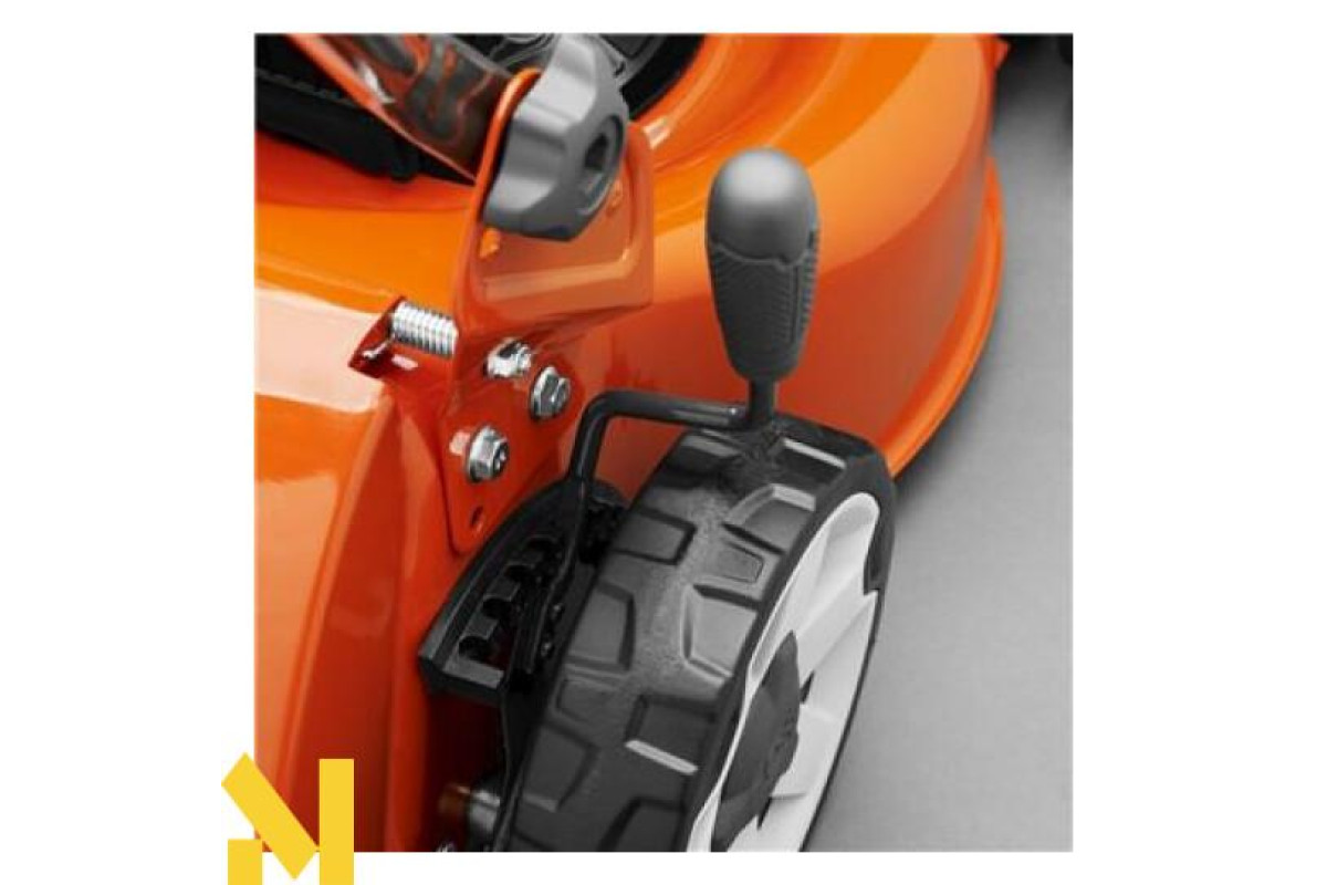 Компактний корпус і ширина косіння 41 см дозволяють стригти газон у вузьких місцях, а також маневрувати між деревами і іншими перешкодами.