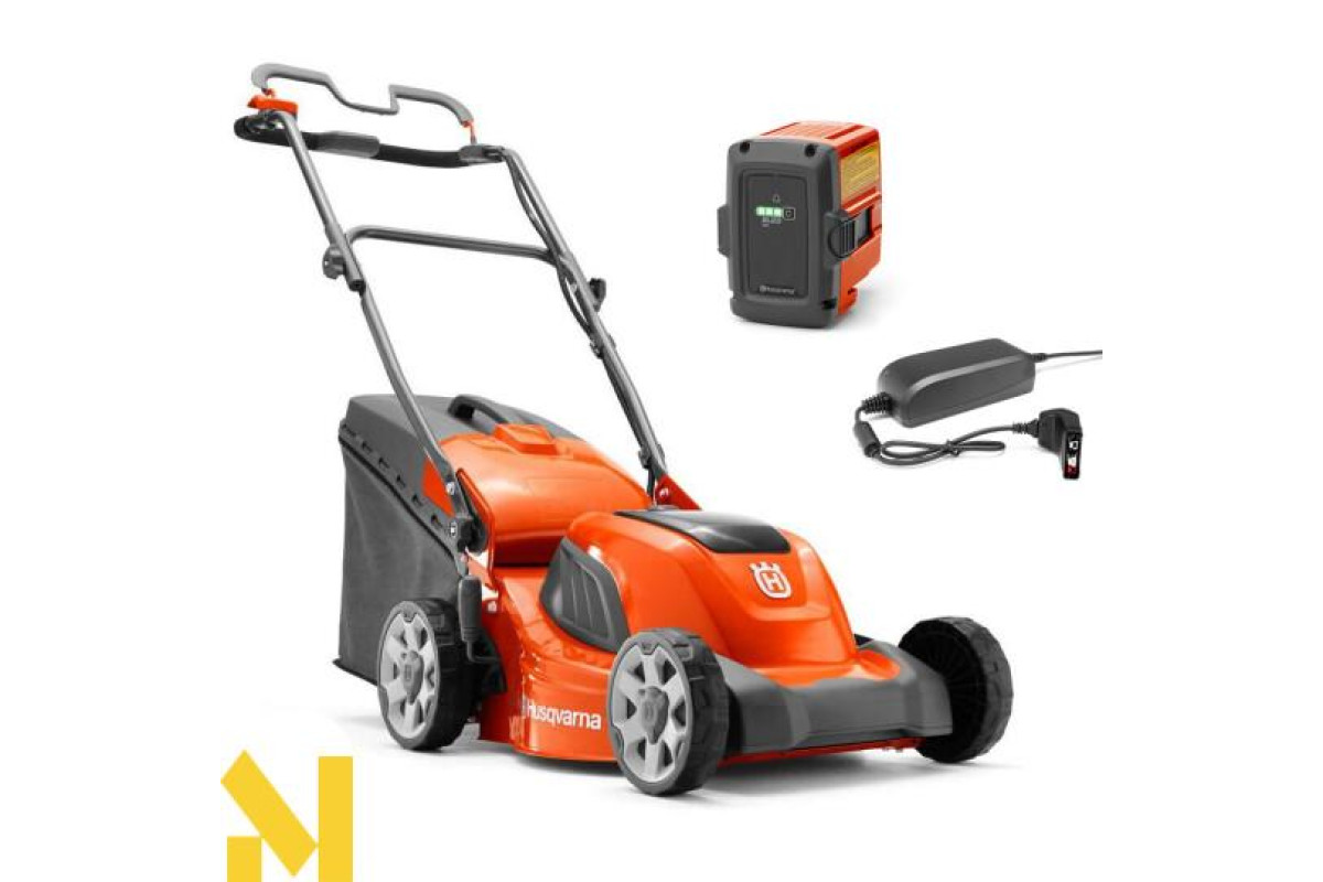 Husqvarna LC 141i KIT - не самохідна акумуляторна газонокосарка для стрижки газонів на середній ділянці. Комплектується акумулятором і зарядним пристроєм для косіння газонів на території віддаленій від електроенергії.