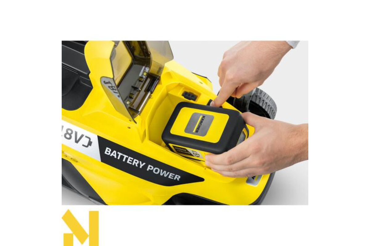 - Технологія реального часу з ЖК-дисплеєм батареї: час роботи, час зарядки, і ємність батареї. Довговічний і потужний завдяки літій-іонним елементам. Змінний акумулятор може використовуватися у всіх пристроях на платформі Kärcher 18 В Battery Power.