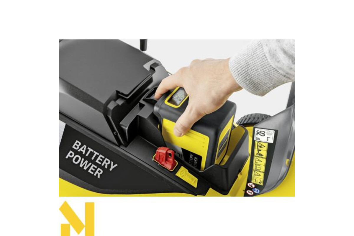 - Технологія реального часу з ЖК-дисплеєм батареї: час роботи, час зарядки, і ємність батареї. Довговічний і потужний завдяки літій-іонним елементам. Змінний акумулятор можна використовувати в усіх інших пристроях на платформі Battery Power від 36 В від Kärcher.