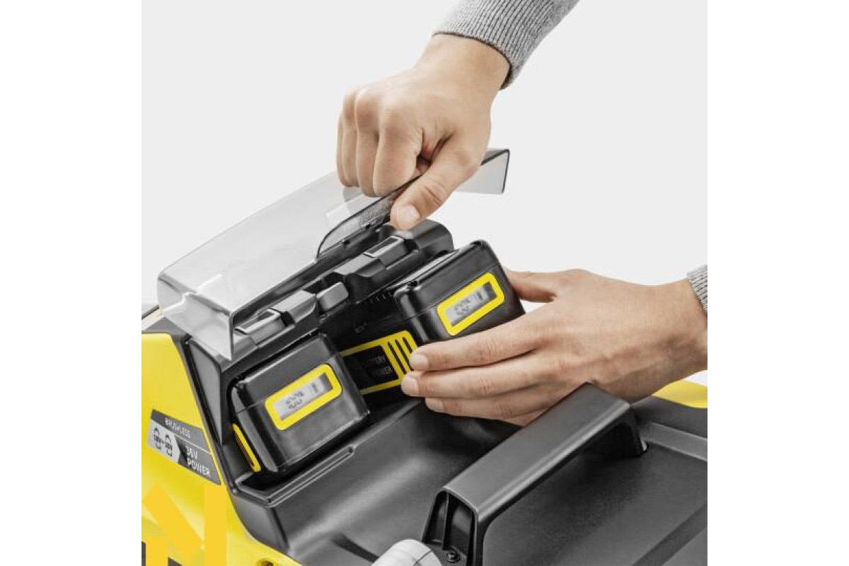 З подвоєною потужністю – довговічна акумуляторна газонокосарка LMO 5-18 Dual Battery Set живиться від двигуна на 36 В і двох батарей на 18 В. Акумулятори і швидкий зарядний пристрій входять в комплект.