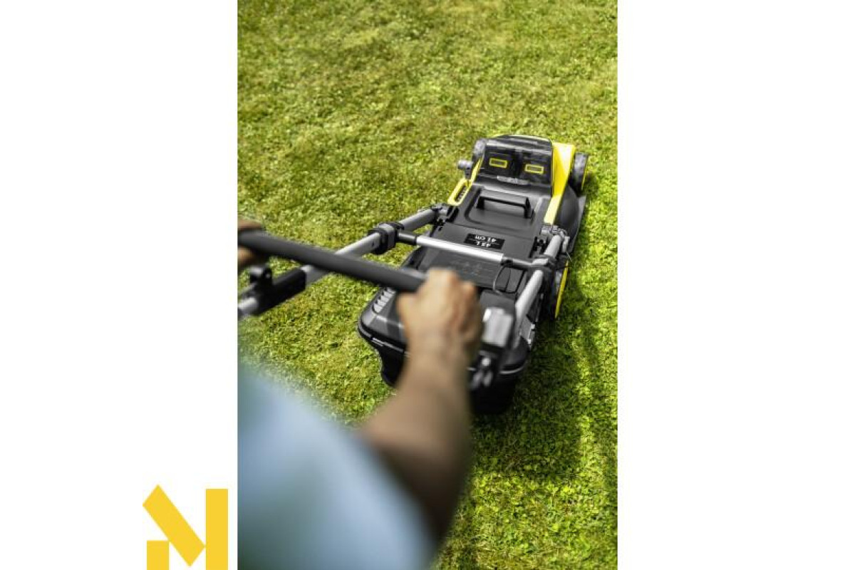 Газонокосарка LMO 5-18 Dual Battery оснащена двома 18-вольтними акумуляторами та потужним безщітковим 36-вольтним двигуном, що дозволяє ефективно косити газони площею до 550 кв. м. Завдяки малій вазі та маневреності пристрій легко переміщується нерівною місцевістю та навколо перешкод. Робоча ширина косіння становить 41 см, а висота зрізу регулюється в шести положеннях у діапазоні від 25 до 70 мм. Інтелектуальна система управління двигуном iPower автоматично адаптує швидкість обертання ножа відповідно до густоти та жорсткості трави. Вбудовані гребінки забезпечують якісне захоплення стебел під час обробки країв газону. Косарна система «2 в 1» дозволяє рівномірно розподіляти скошену траву по газону для природного удобрення (функція мульчування) або збирати її в травозбірник місткістю 45 літрів, що забезпечує тривалу роботу без частого спорожнення. Поводкова рукоятка регулюється за висотою для зручності користувача, а складна конструкція дозволяє компактно зберігати пристрій. Для зручного транспортування передбачена велика й міцна ручка для перенесення. Газонокосарка LMO 5-18 Dual Battery сумісна з акумуляторною платформою Kärcher Battery Power 18 В.