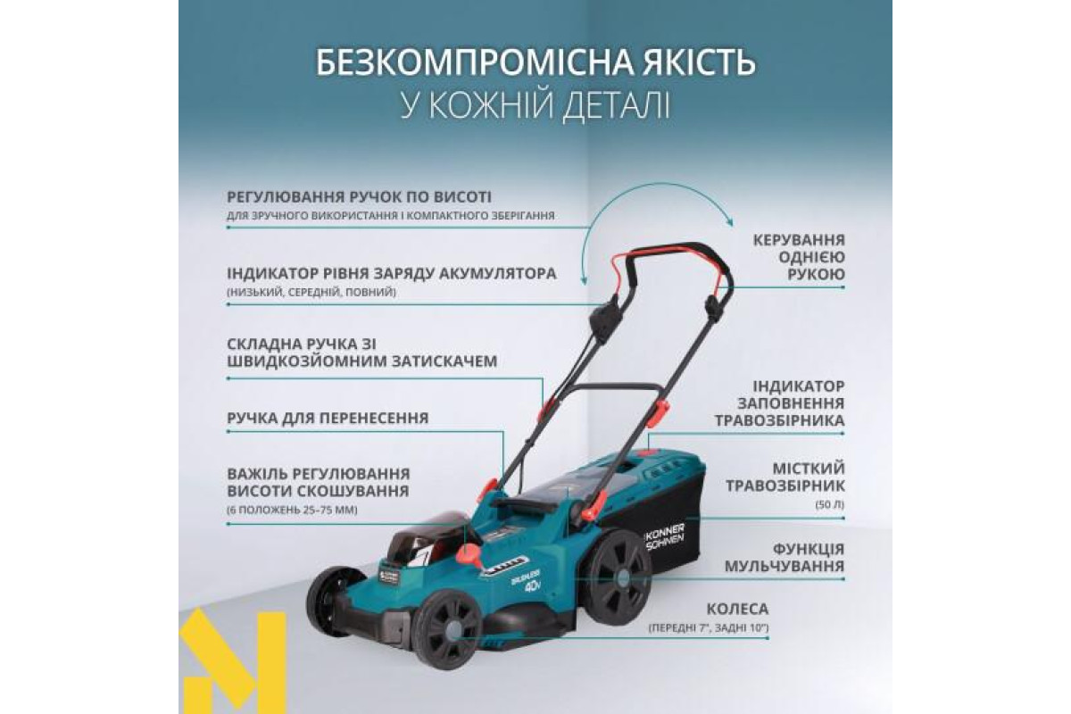 Документація Газонокосарка акумуляторна Konner&Sohnen KS 43LM-40V SET
