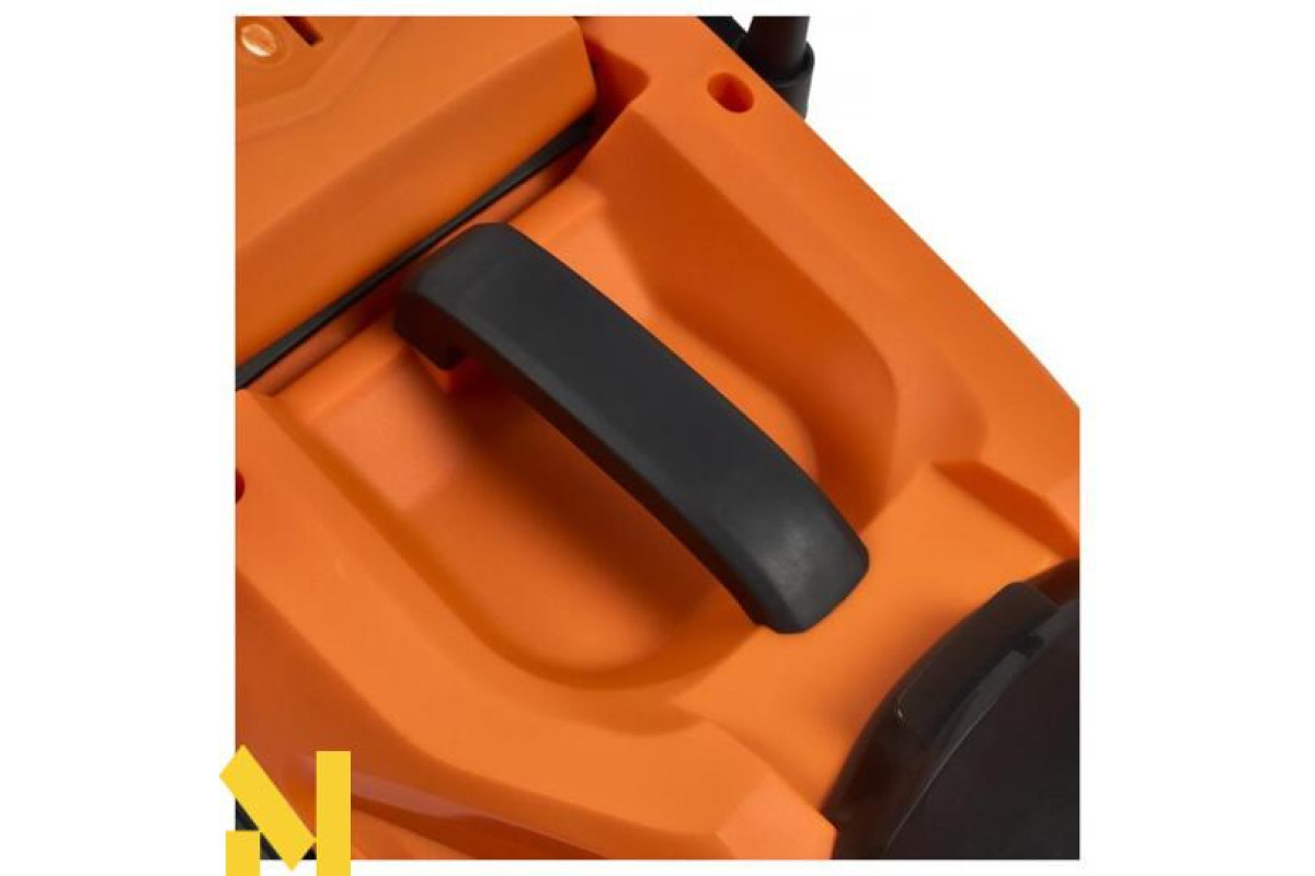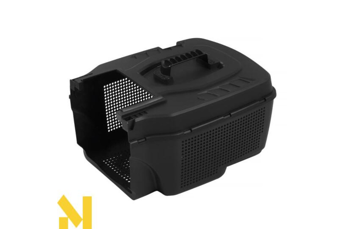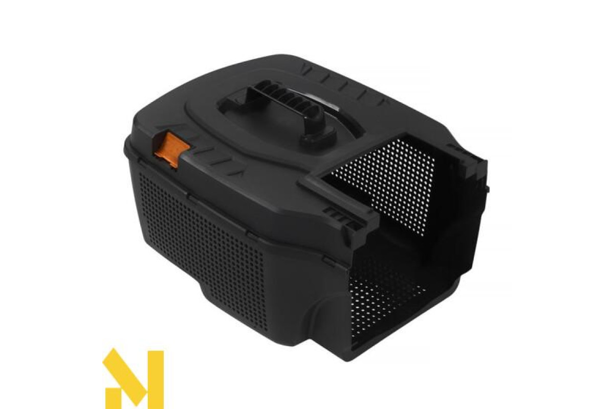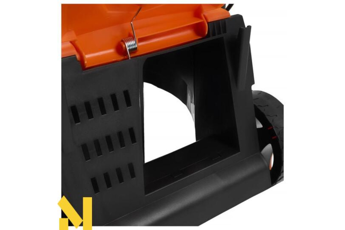 Пристрій оснащений містким30-літровим кошиком для збору трави. Дизайн кошика був ретельно продуманий нами, виготовлений з пластику, з ручкою для перенесення .