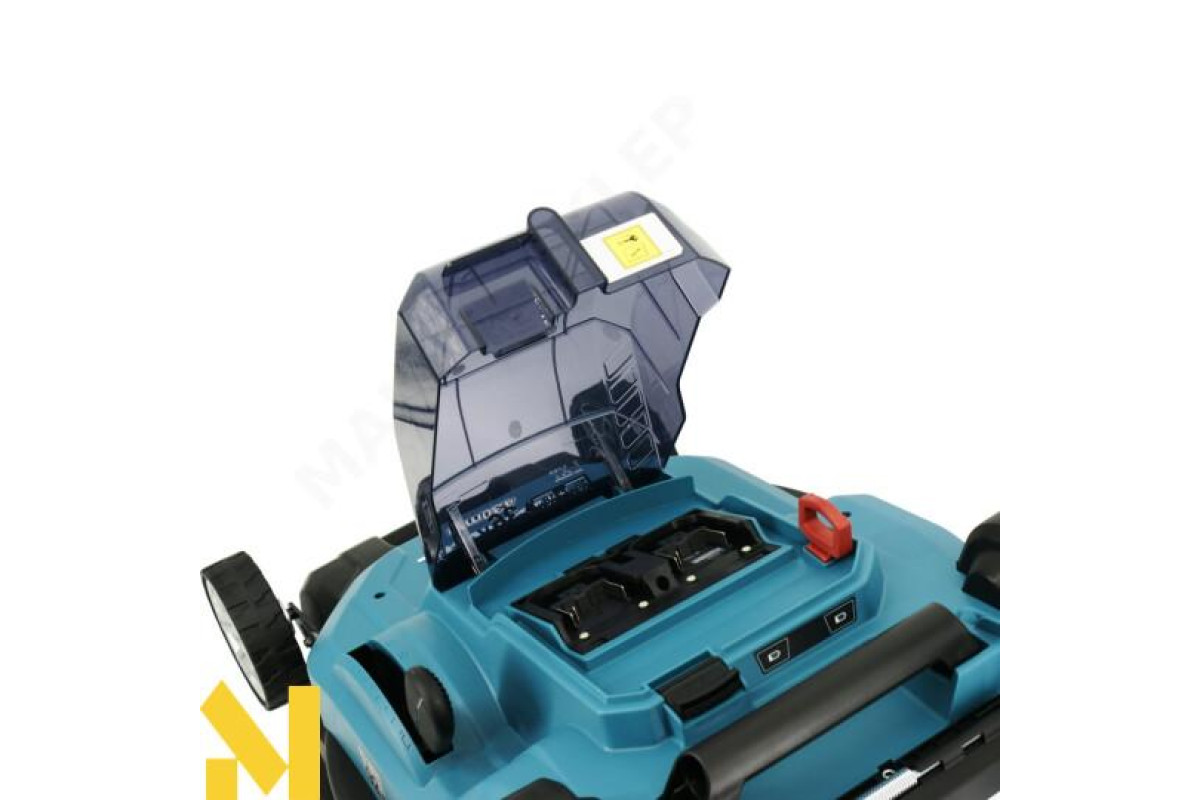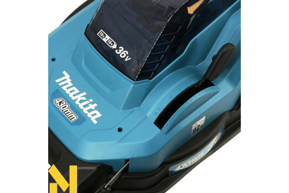 Акумуляторна газонокосарка з шириною різу 43 см, що працює від двох батарей LXT 18 В