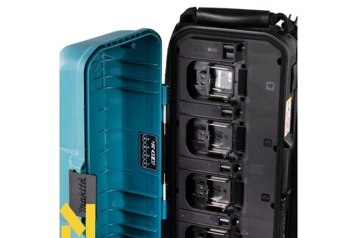 Рюкзак поміщає в себе чотири літій-іонні батареї, для збільшення часу роботи акумуляторного інструменту