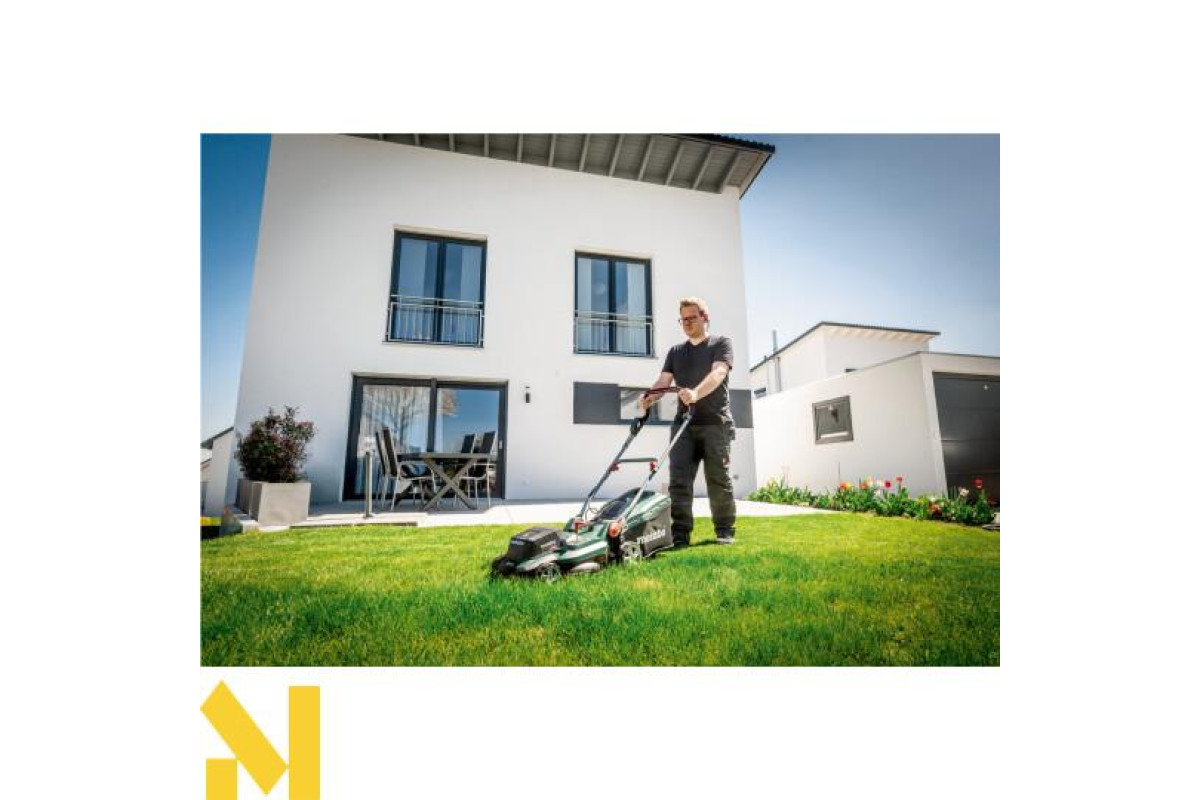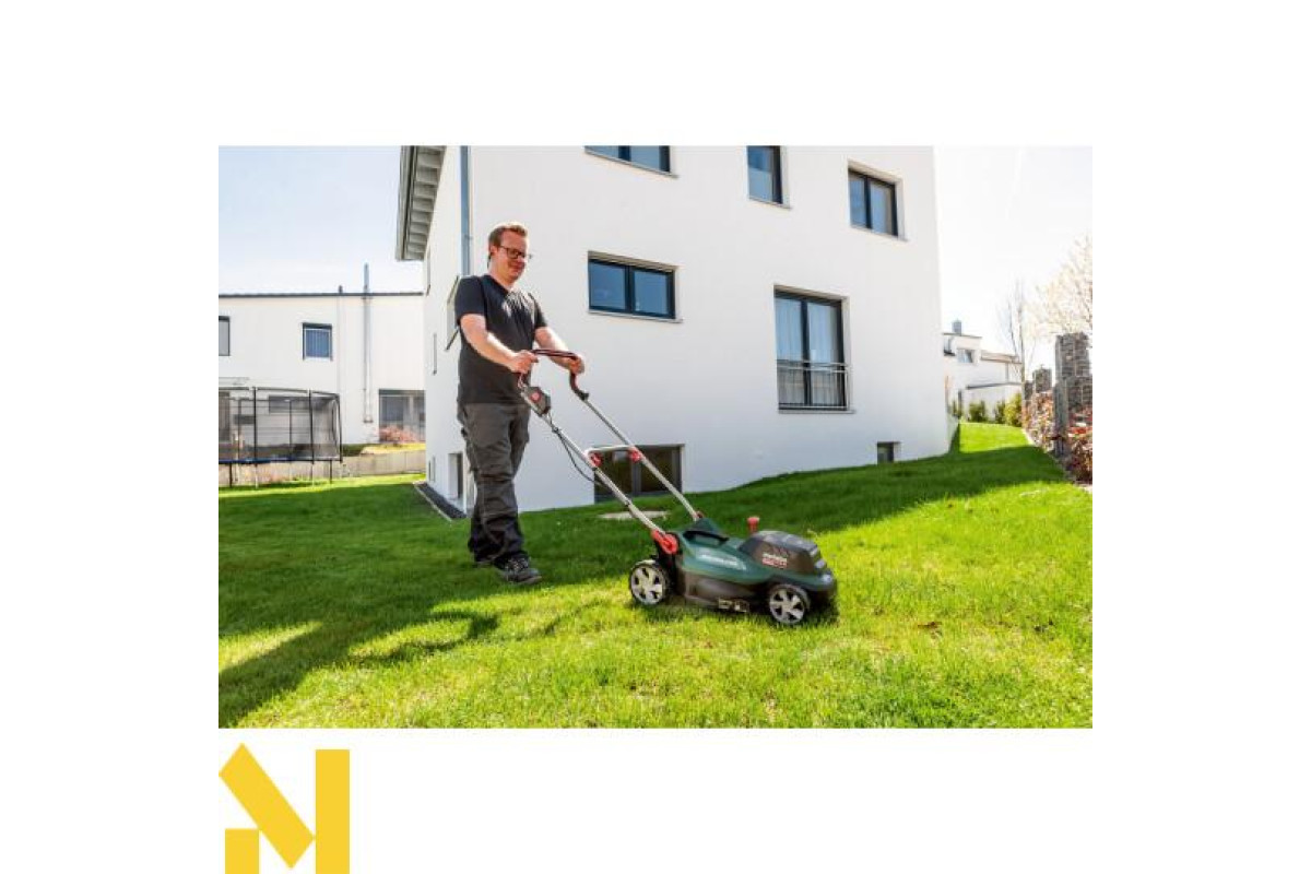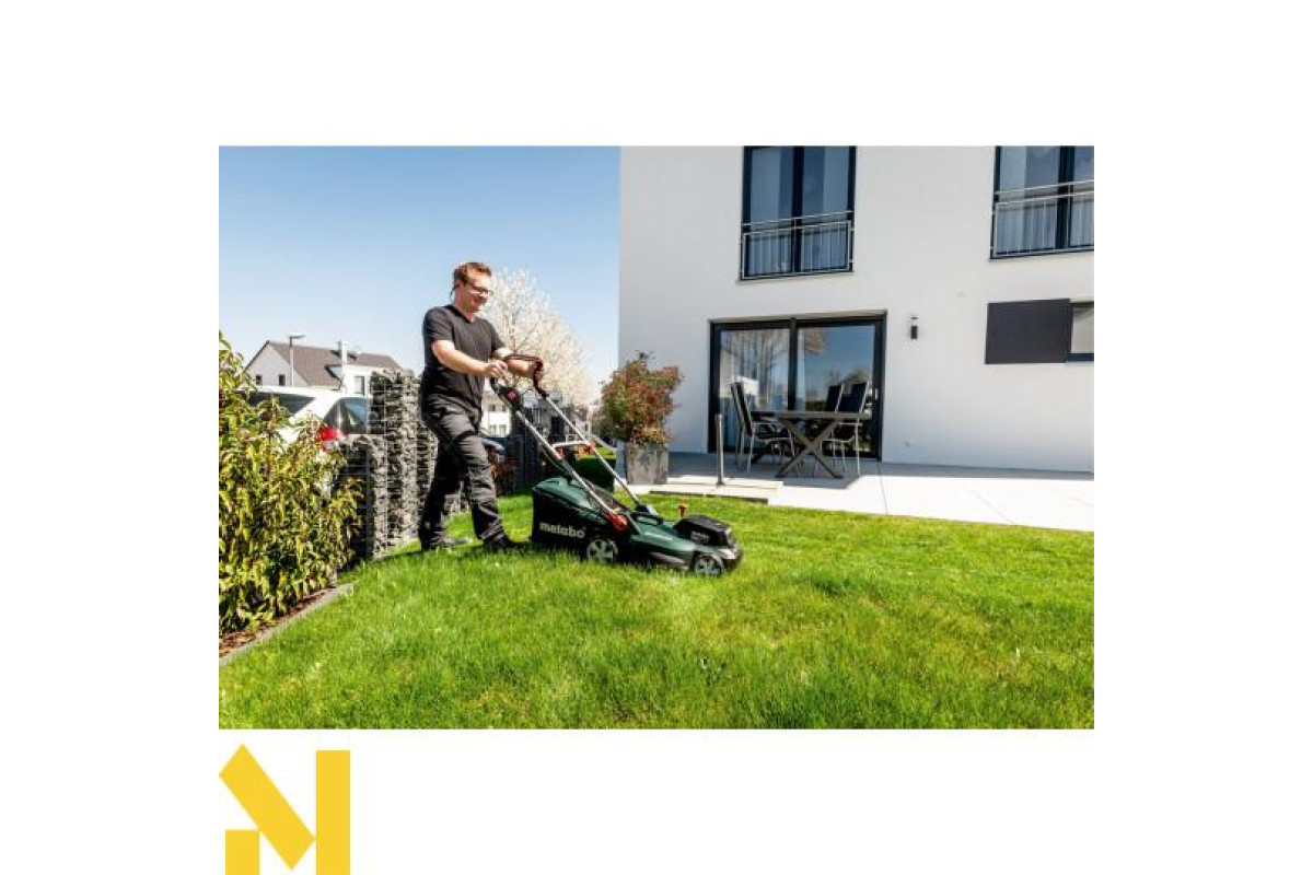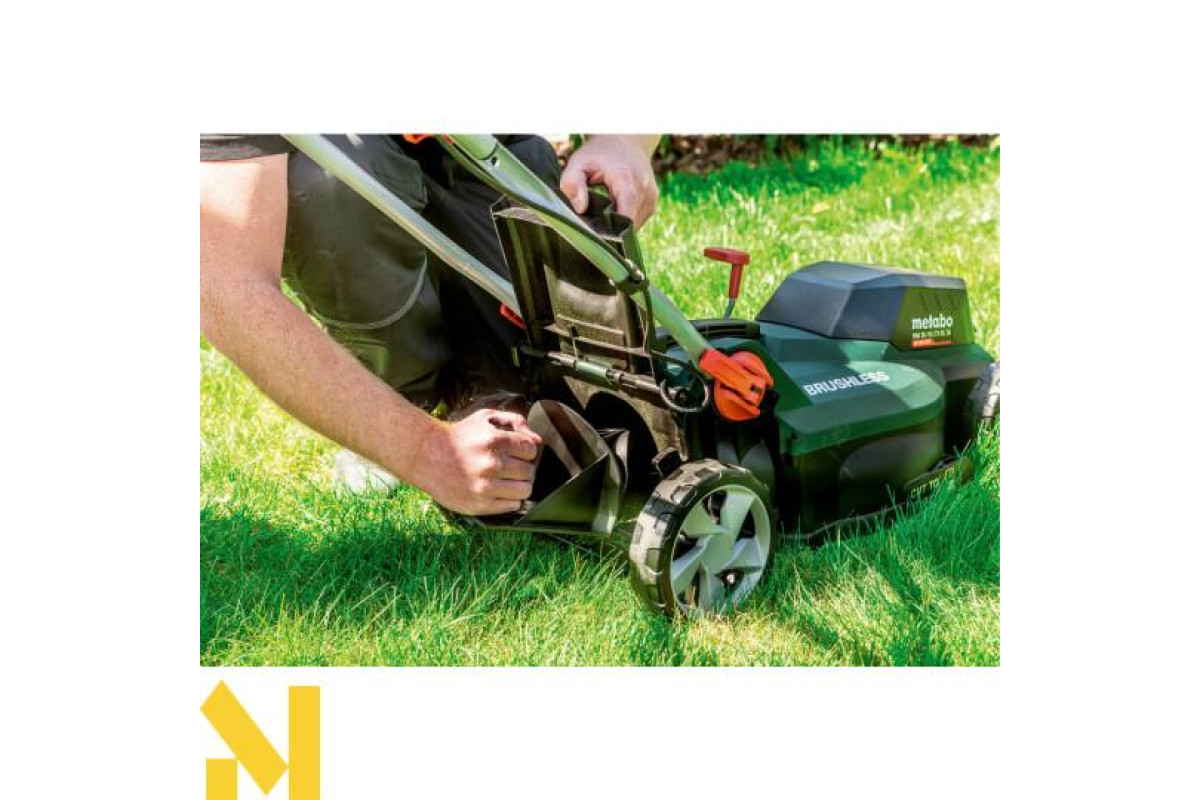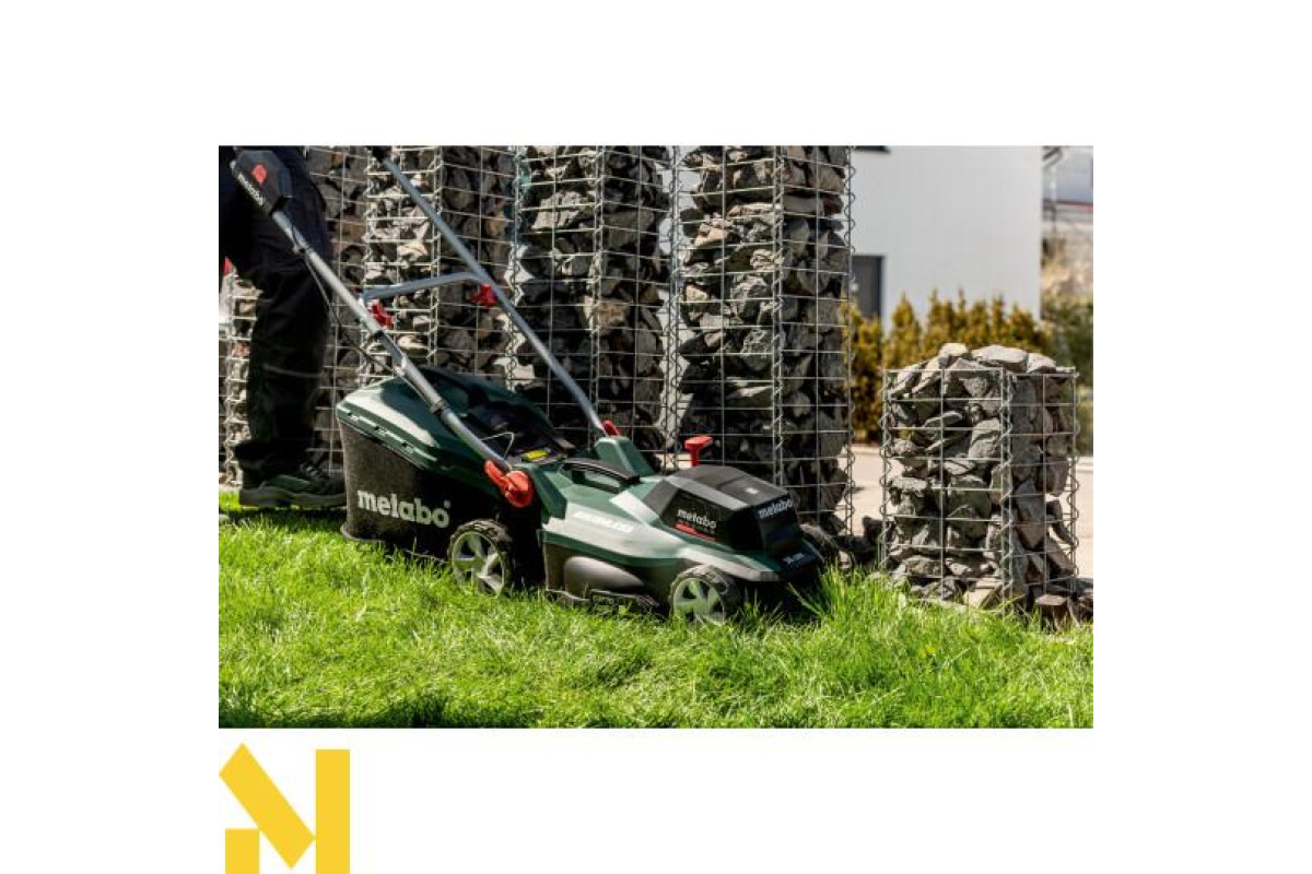 Акумуляторна газонокосарка Metabo RM 36-18 LTX BL 36 каркас чудовий вибір для скошування, мульчування та збору трави, на ділянках площею до 350 м². У цю комплектацію не входять акумуляторні блоки та зарядний пристрій.
