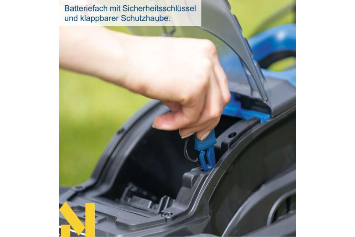 Бездротова робота з 20-вольтовою серією Scheppach IXES – усі акумулятори та зарядні пристрої системної серії можна комбінувати з бездротовою газонокосаркою
