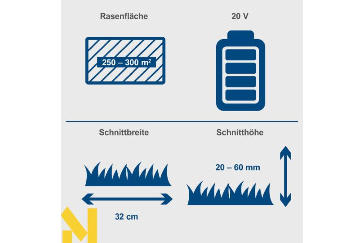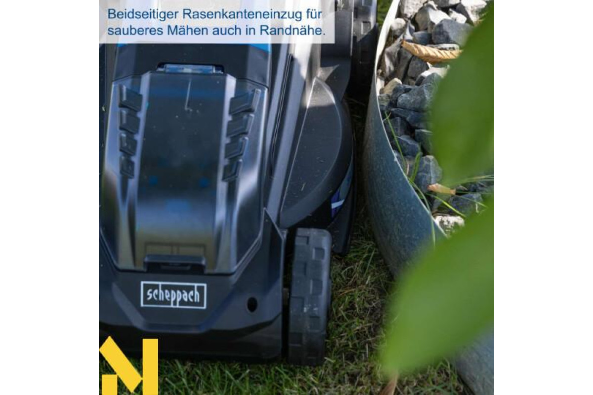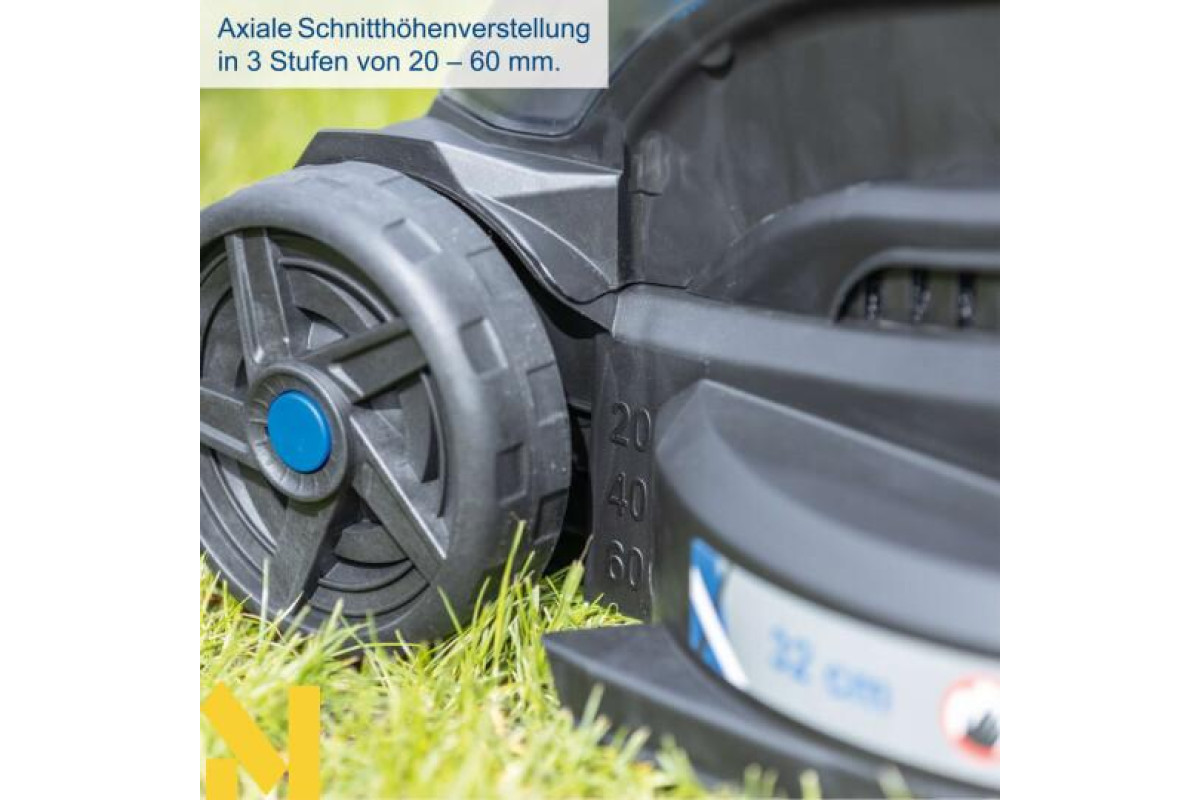 З шириною скошування 32 см акумуляторна газонокосарка Scheppach BC-MP320-X ідеально підходить для невеликих житлових будинків, терасованих будинків та невеликих садів з газонами площею від 250 до 300 м². Осьове регулювання висоти скошування в трьох кроках від 20 до 60 мм та двосторонній обрізувач країв газону забезпечують оптимальні результати скошування. BC-MP320-X оснащена потужним безщітковим двигуном. Цей безщітковий двигун забезпечує особливо високу ефективність, довший час роботи, тривалий термін служби та знижений знос. Як частина серії Scheppach IXES 20 вольт, усі акумулятори та зарядні пристрої системи можна комбінувати з газонокосаркою.