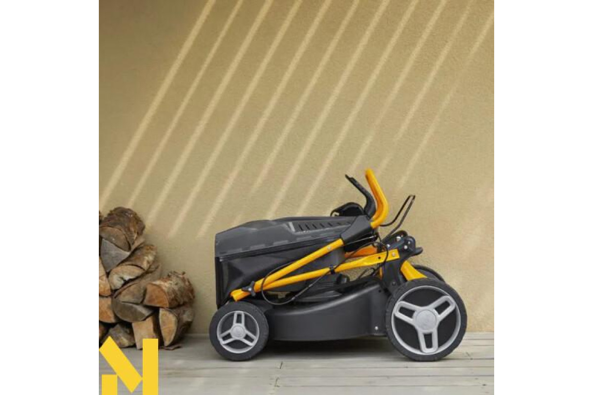 Ця потужна самохідна газонокосарка, що приводиться в рух двома потужними синхронізованими акумуляторами 48 В 4 Ач, покриває площу до 550 кв.м на одній зарядці.