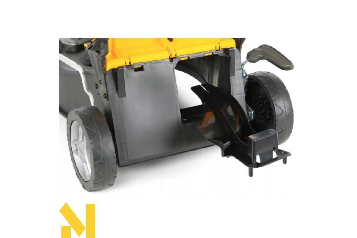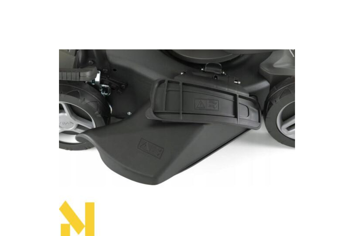 - Газонокосарка може працювати в режимі бічного викиду після використання димоходу. Зрізана трава потім викидається з боку пристрою на землю. Вставка для мульчі включена.