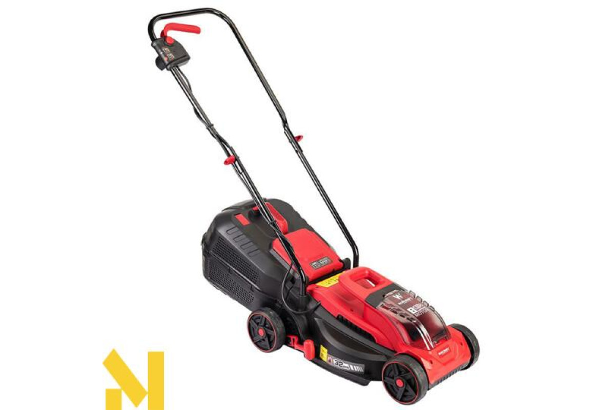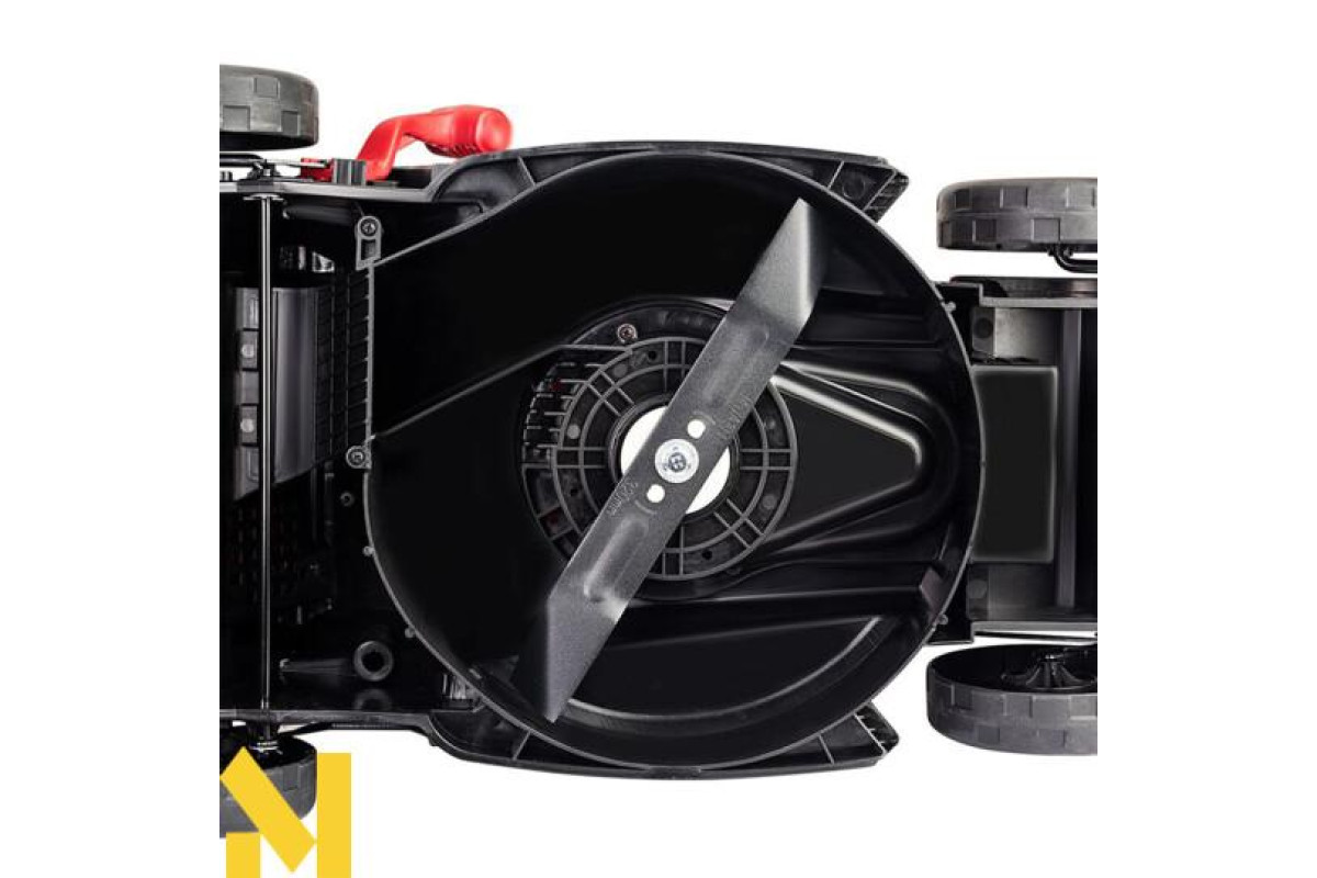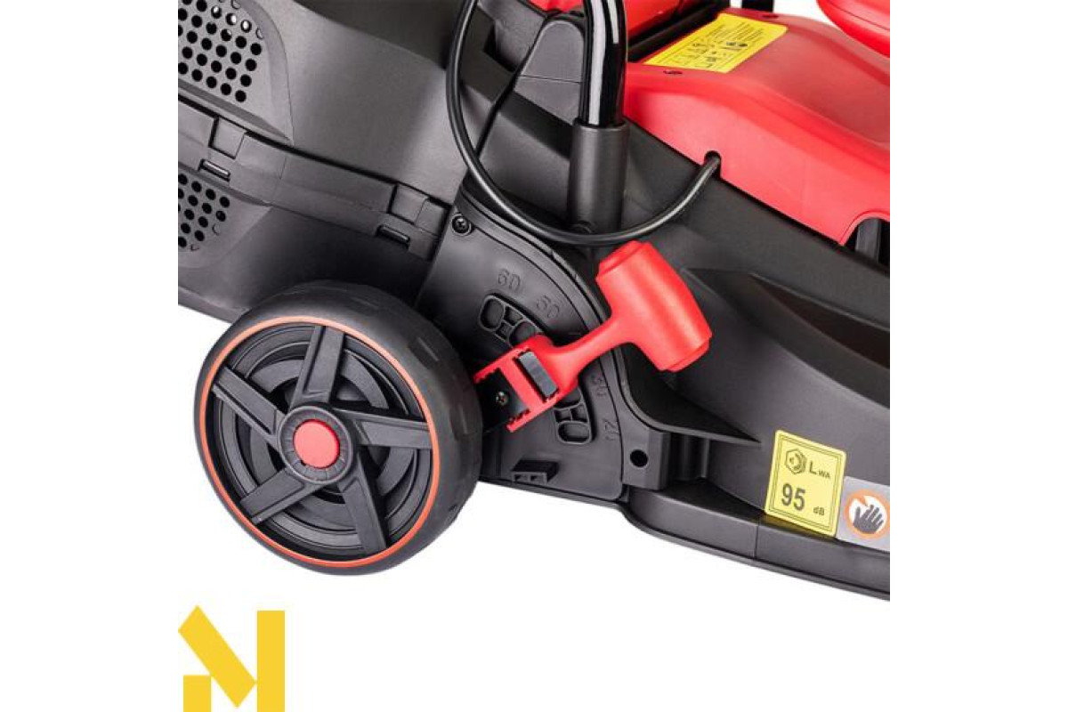 Робота від акумулятора забезпечує низький рівень шуму, який не заважає сусідам, а важіль регулювання висоти скошування, дає змогу змінювати положення газонокосарки в 5 режимах.