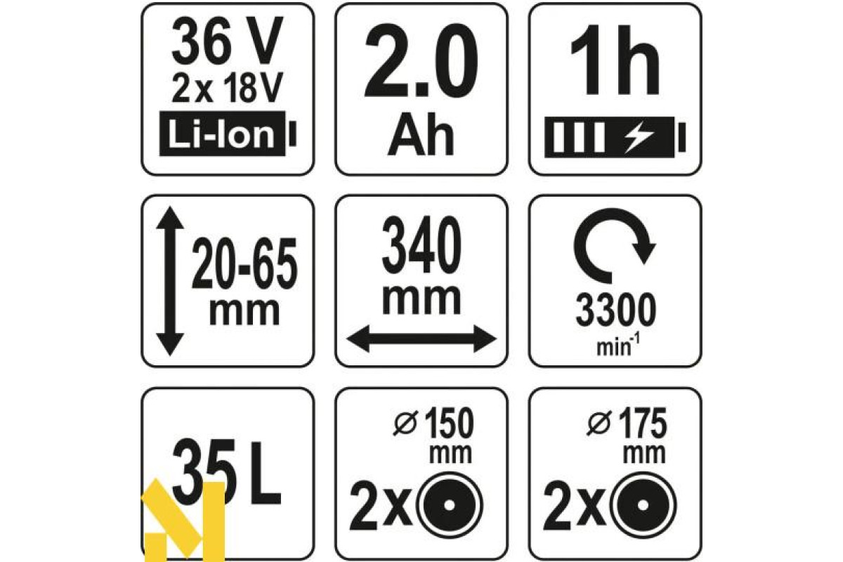 Доступні відповідні батареї (можна докупити): 2 Аг (YT-82842), 3 Аг (YT-82843) і 4 Аг (YT-82844). Акумулятор YT-82845 6 Аг несумісний з косаркою.