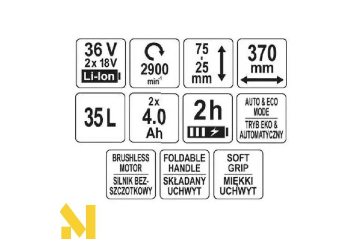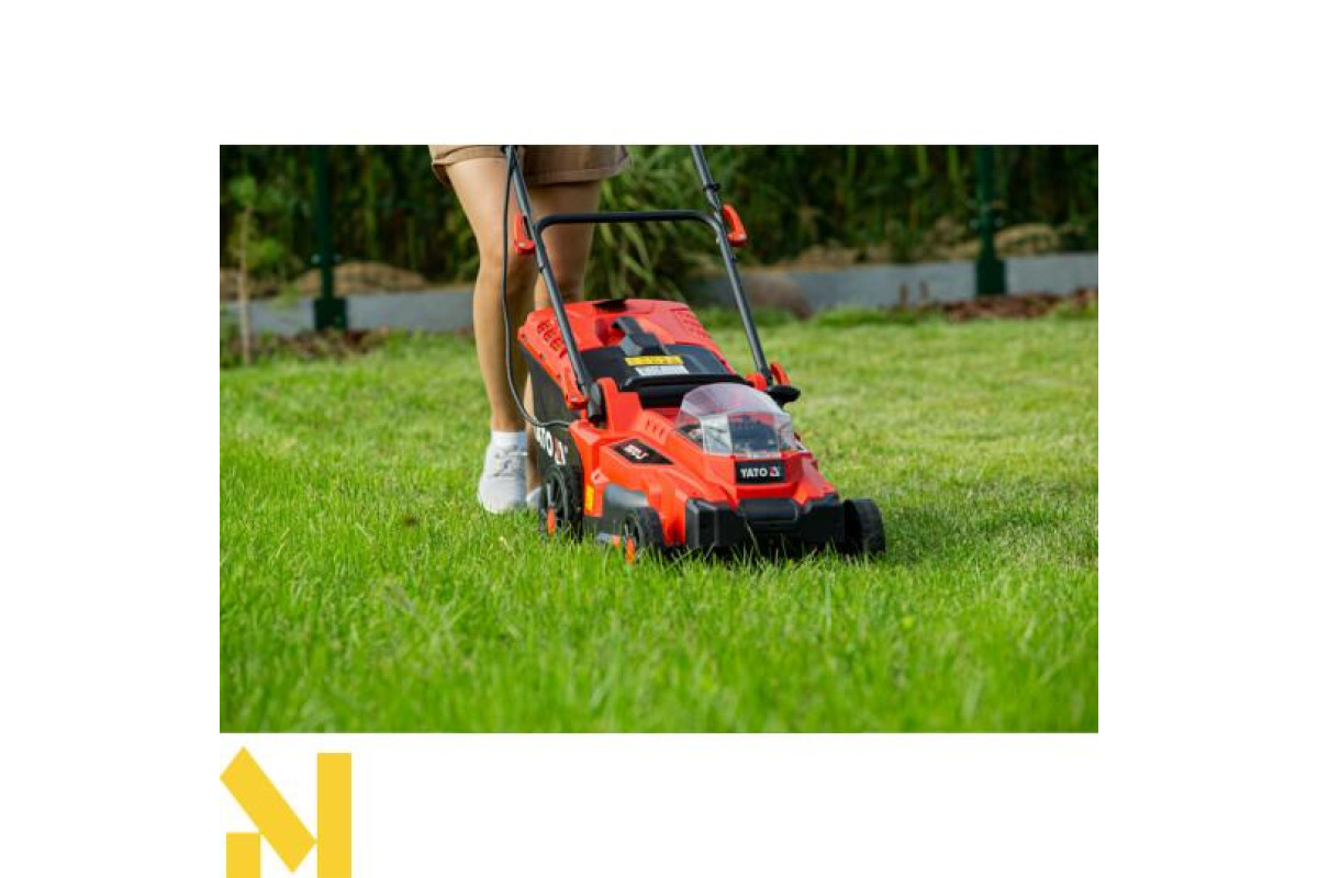 Газонокосарка YATO YT-85222 з подвоєною потужністю 2 системних акумуляторів по 18 по 36 В забезпечує тихий і зручний догляд за газоном.