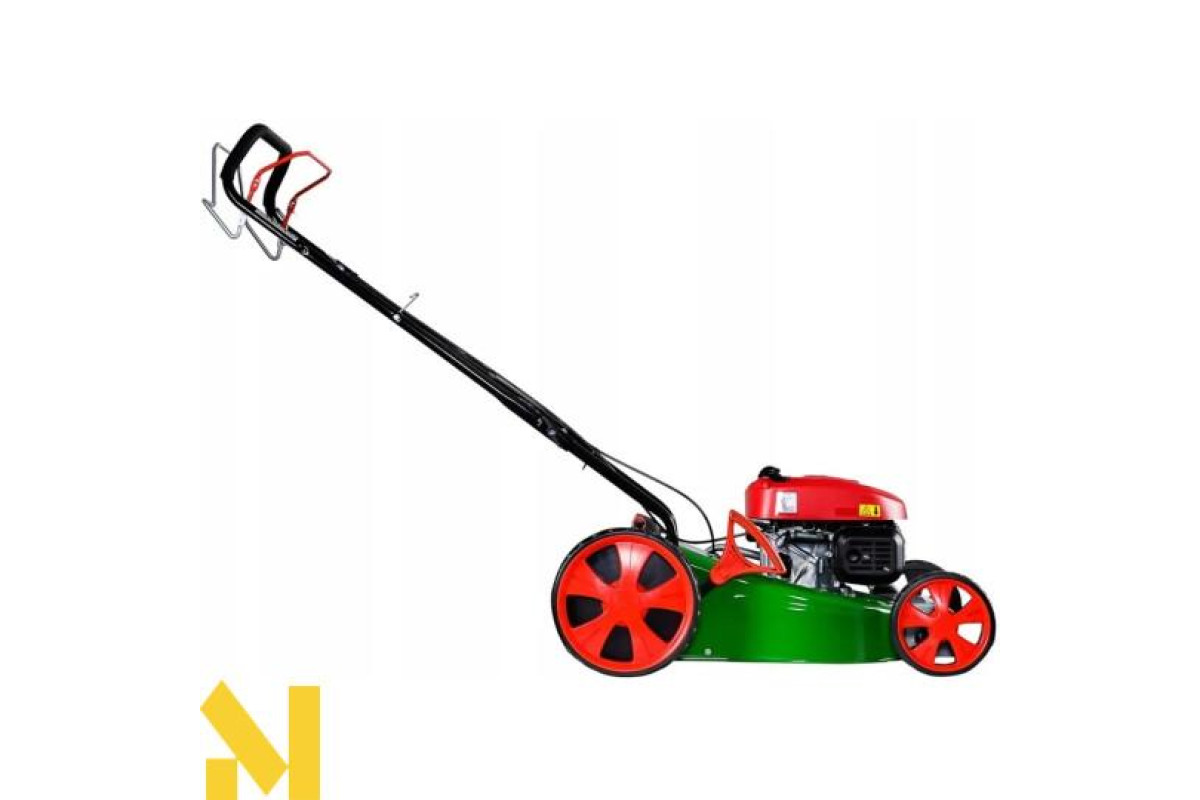 Передня і задня колісні пари діаметром 20 і 28 см полегшують перекочування косарки по незначним нерівностей, покращують прохідність по вологим травам, що не передавлівая стебла. Беззвучні кулькові підшипники роблять хід більш м'яким, без ривка.