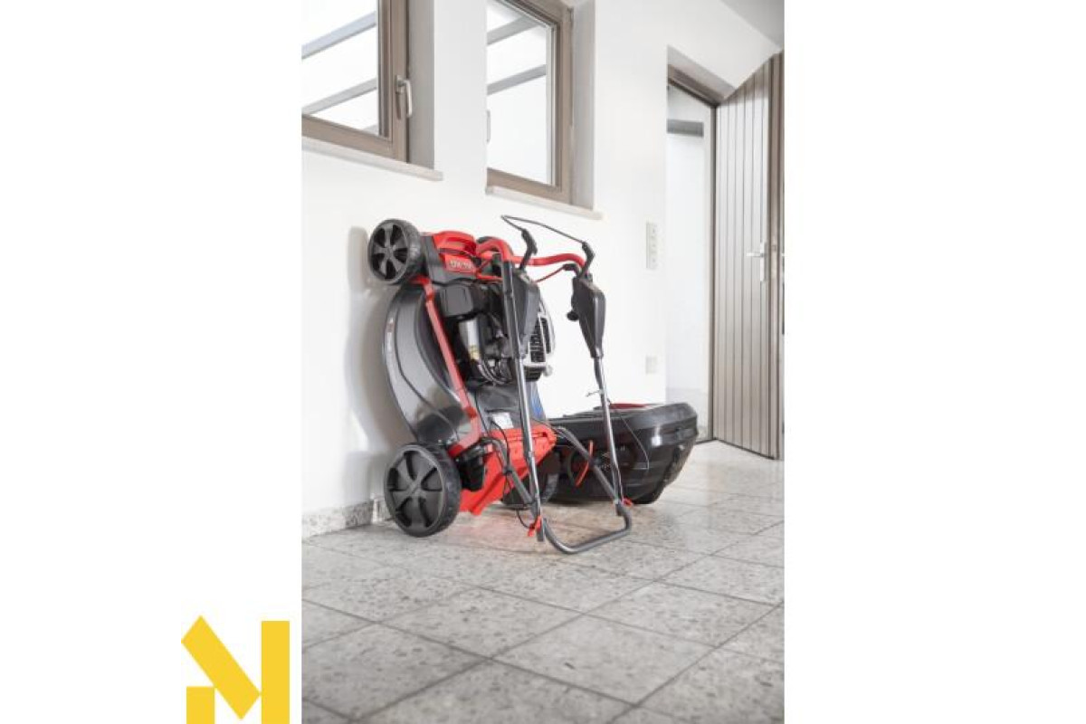 Колеса різного діаметра з легкістю пересуваються по різному рельєфу і дозволяють підняти газонокосарку навіть по сходах. Легкість ходу не вимагає ніяких зусиль з боку оператора.