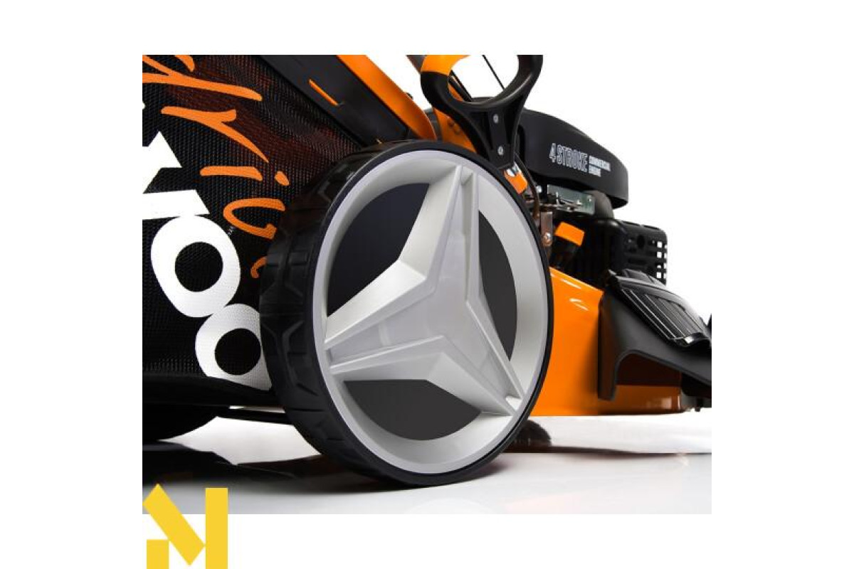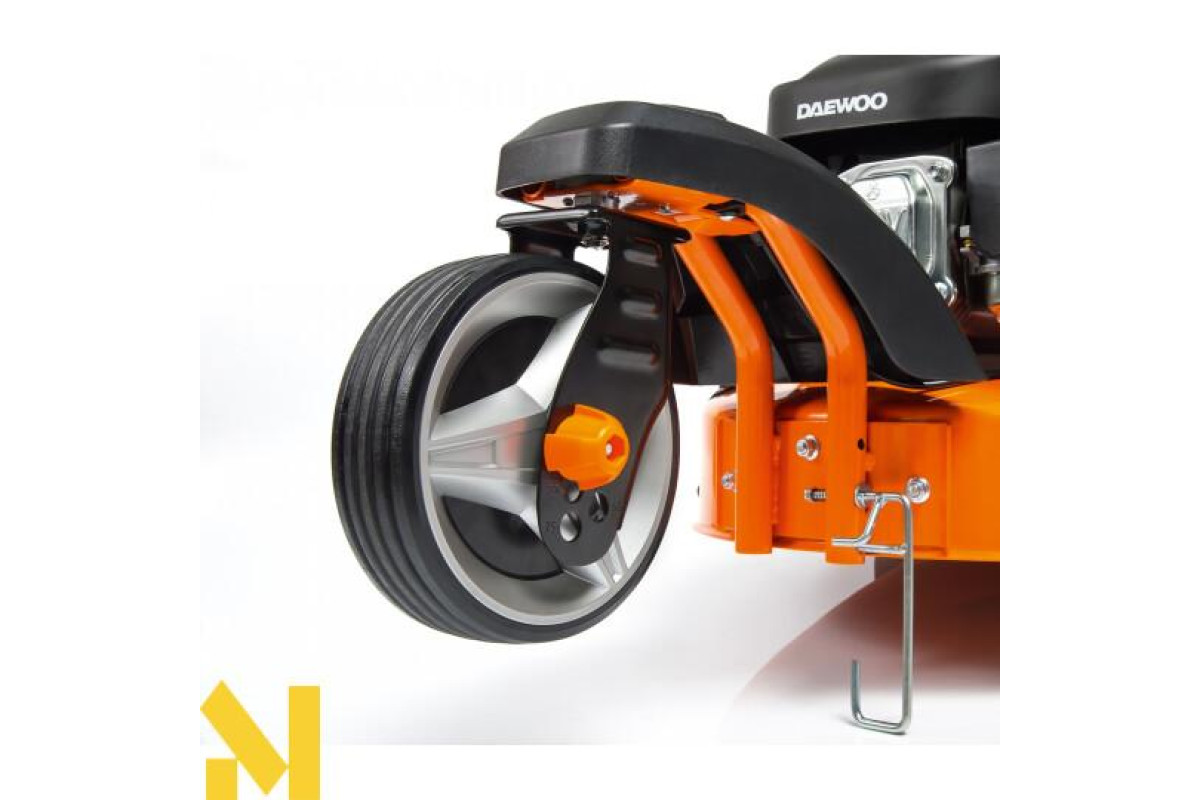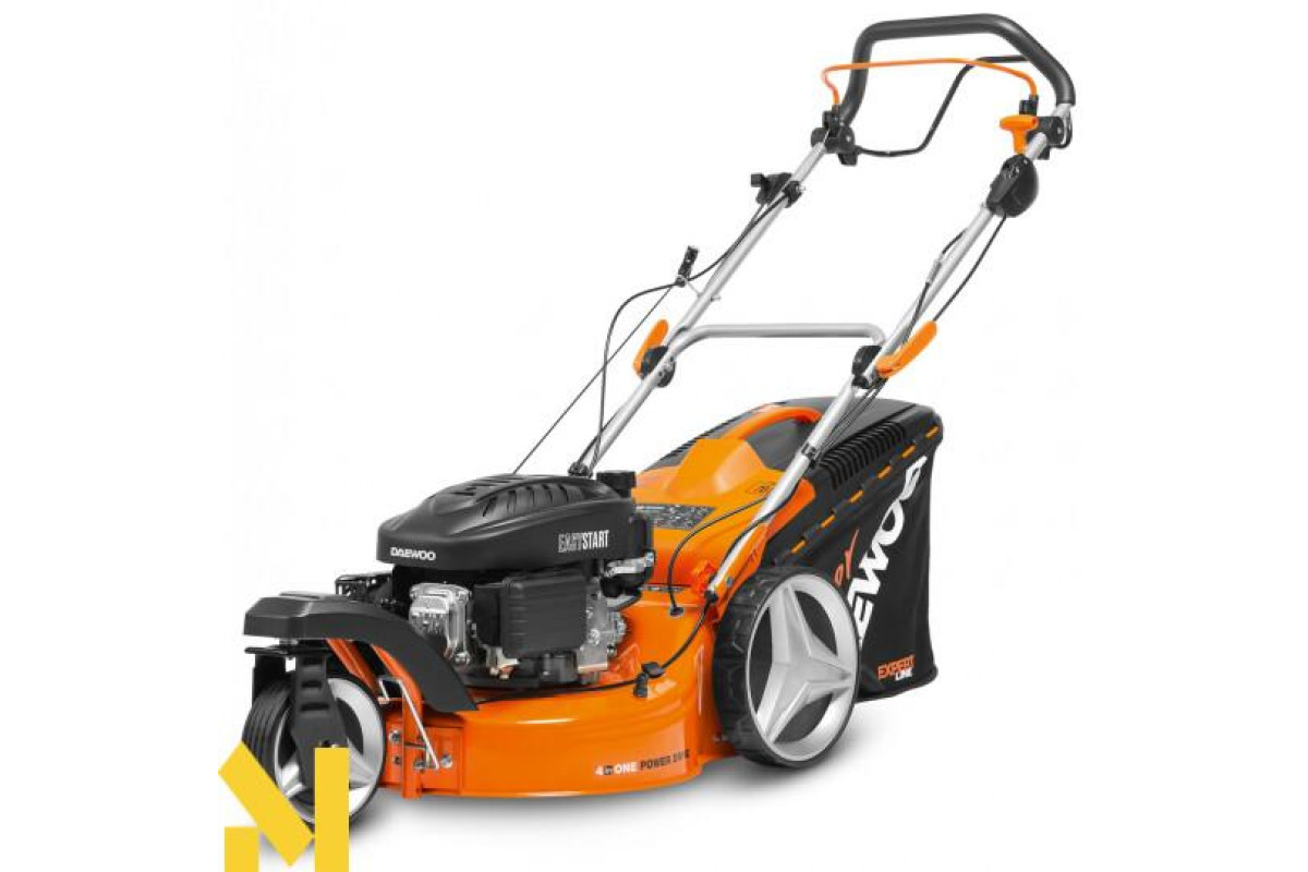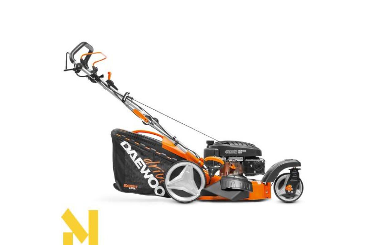 Газонокосарка оснащена надійним бензиновим чотиритактним двигуном Daewoo, який був спеціально розроблений для цієї категорії пристроїв. Агрегат запускається за допомогою ручного стартера. Легке пересування косарки на невеликих схилах і косіння трави на зволоженій поверхні забезпечується завдяки оптимальному комбінування крутного моменту і швидкості обертання валу. Привід на задні колеса гарантує маневреність пристрою. А спеціально підібране передавальне число трансмісії зробить працю на оброблюваній ділянці не тільки ефективним, але і комфортним для оператора.