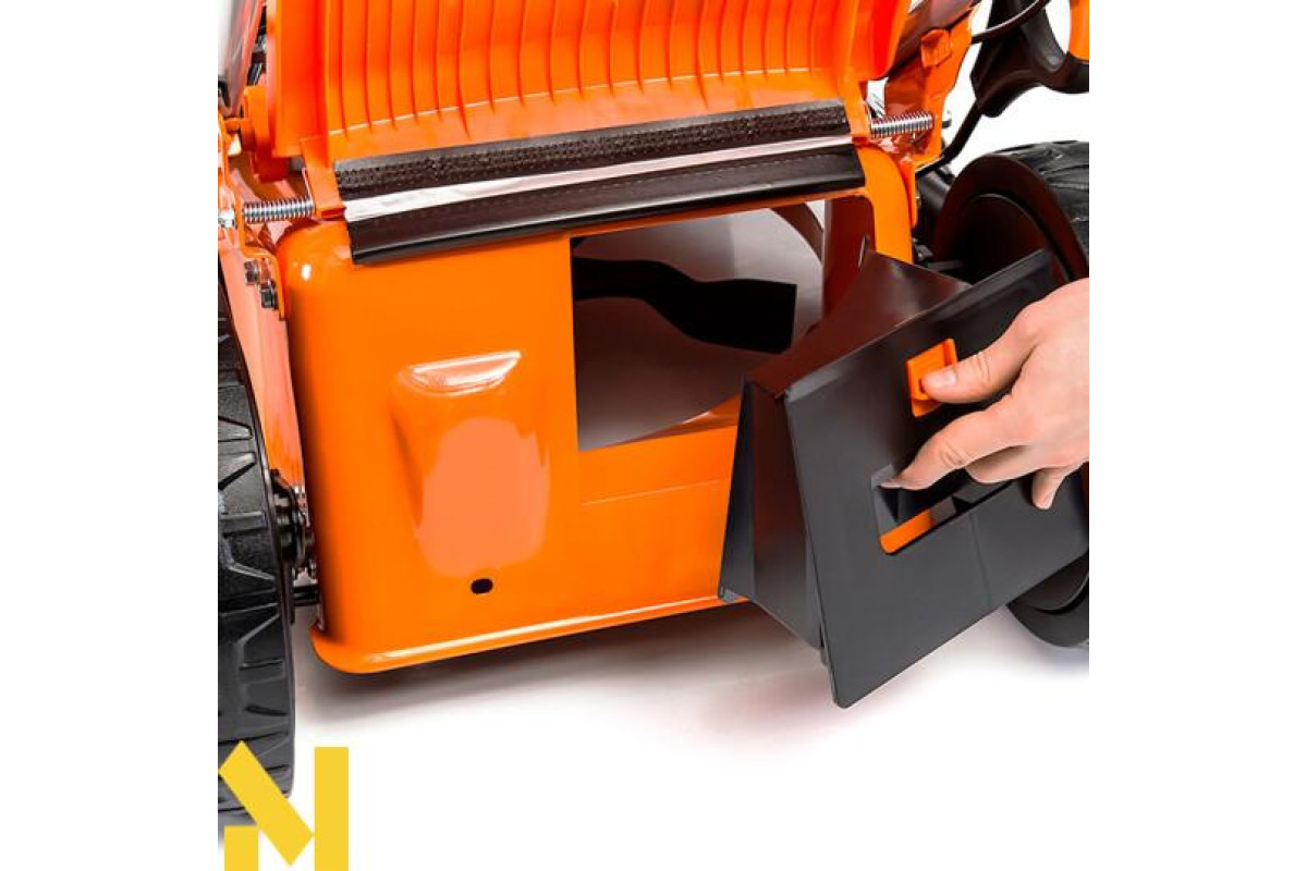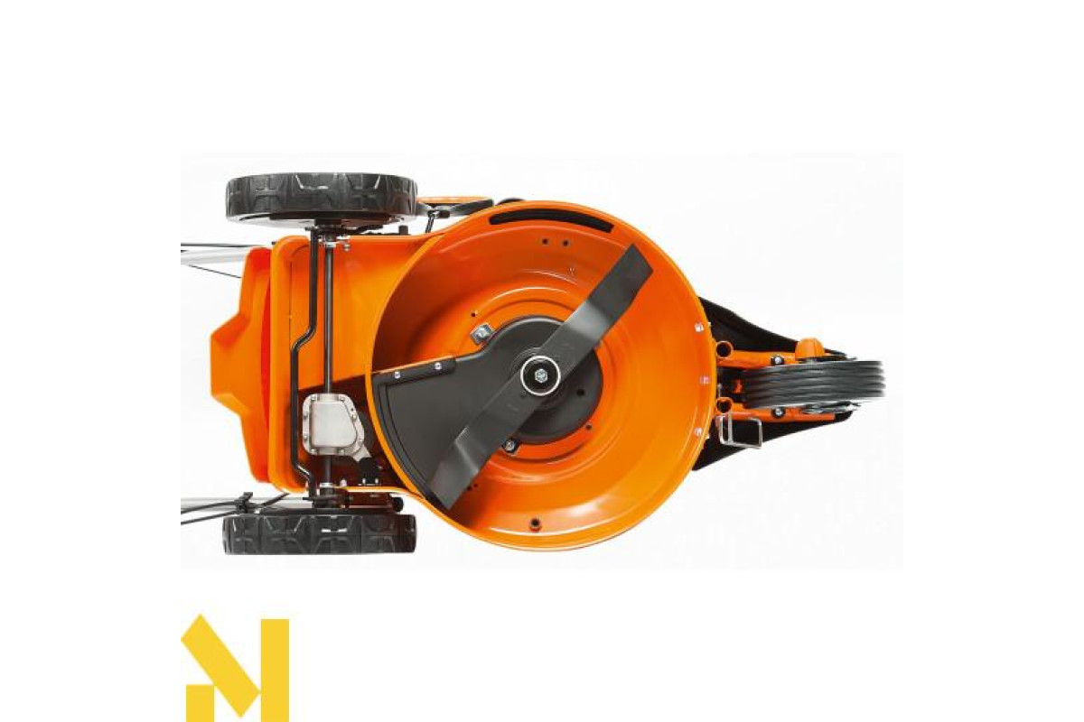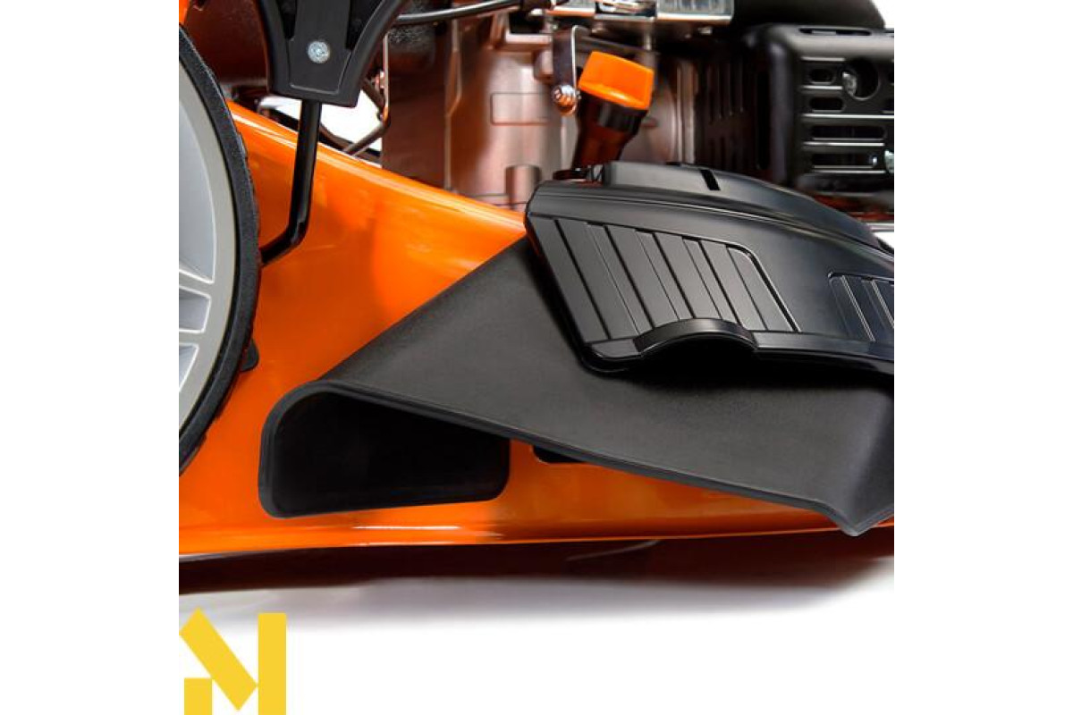 Міцний аеродинамічний ніж зі спеціально підібраним кутом косіння ріжучої кромки не зажадає частого заточування. А наявність «функції 4 в 1» має на увазі косіння, збір, мульчування і бічний / задній викид зрізаної трави. Висоту косіння рослинності - від 25 до 75 мм - можна регулювати в 6 позиціях за допомогою важелів на колесах. Ширина скошування при цьому становить 500 мм за один прохід косарки. Місткість травозбірника (70 л) дає можливість працювати тривалий час без перерв на викидання його вмісту. Він виготовлений зі спеціального пластика, який легко очищується від трави.