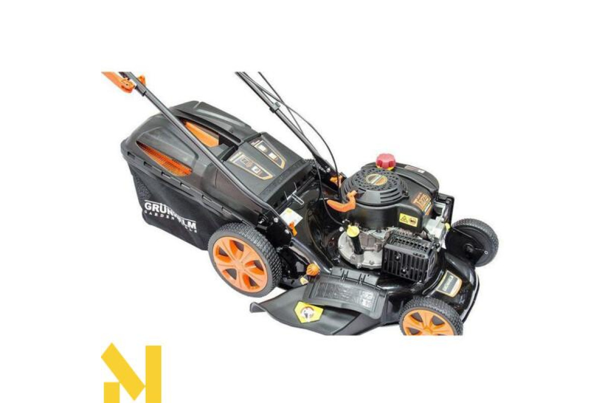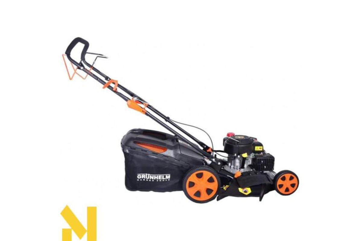 Продуктивна садова самохідна газонокосарка, оснащена ефективним чотиритактним двигуном внутрішнього згоряння і сталевим роторним ножем. Виробником позиціонується як доступний продукт середньої цінової категорії, призначений для швидкого і якісного покосу трави на ділянках середньої / великої площі з порівняно рівним рельєфом. Відрізняється помірною вартістю і підвищеною продуктивністю. Оснащена одноциліндровим чотиритактним бензиновим двигуном моделі Т-375 об'ємом 123 см3 зі значною максимальною потужністю 5 к.с. (3,7 кВт). Цей двигун виконаний за схемою з верхнім розташування клапанів (OHV), що покращує стабільність роботи в самих різних, в т.ч. перехідних режимах, і сприяє повному згорянню палива, що знижує токсичність вихлопних газів. Газонокосарка Grunhelm S-531VHY за один прохід здатна обробляти смугу шириною 53 см і обладнана містким комбінованим (пластик / тканина) травозбірником об'ємом 70 л. Так само передбачений бічний і задній викид скошеної трави, підтримується функція мульчування. Дека машини виконана з міцної конструкційної сталі і добре захищена від корозії. Висота скошування регулюється в діапазоні від 25 до 75 мм, є 7 ступенів з синхронним перемиканням. Незважаючи на значну вагу, рівній 42 кг, газонокосарка проста в управлінні, а привід на задні колеса дозволяє легко виконувати значні обсяги робіт.