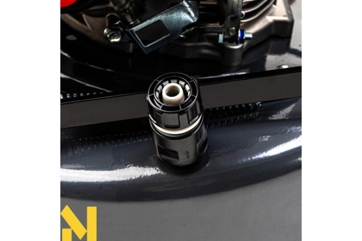 Конектор на деці для підключення садового шланга дає змогу легко очистити її від трави за допомогою води