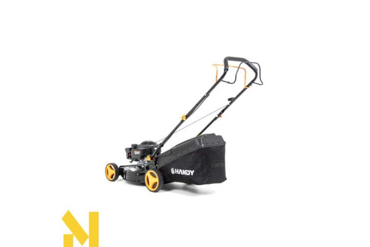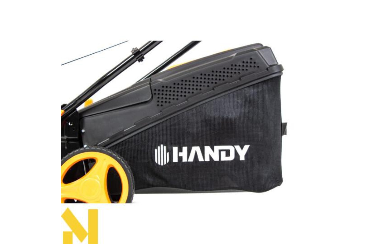 Бензинова газонокосарка Handy DK46N150A також характеризується відмінною моторизацією і простотою управління, завдяки кільком факторам: невеликій вазі 26 кг, наявності двох пар коліс на підшипниках і робочій ширині 46 см. Машина також має кошик, в який можна зібрати до 55 літрів скошеної трави. Рекомендується для газону площею 500 м2.