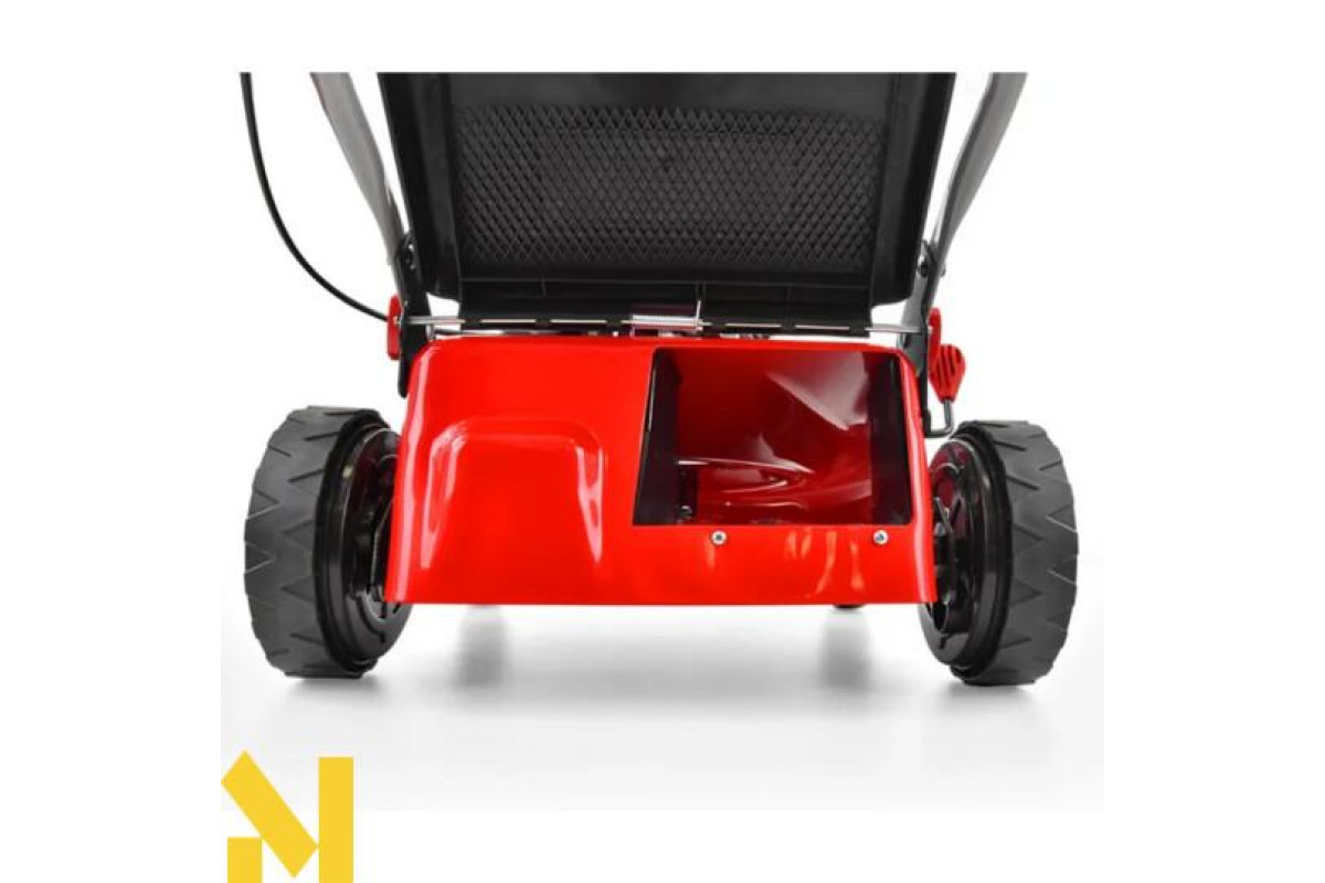 Газонокосарка має великий травозбірник ємністю 60 літрів і може легко пересуватися по газону за допомогою шарикопідшипникових коліс. За необхідності ви можете встановити висоту зрізу за допомогою одного важеля у восьми ступенях, від 25 до 75 мм.