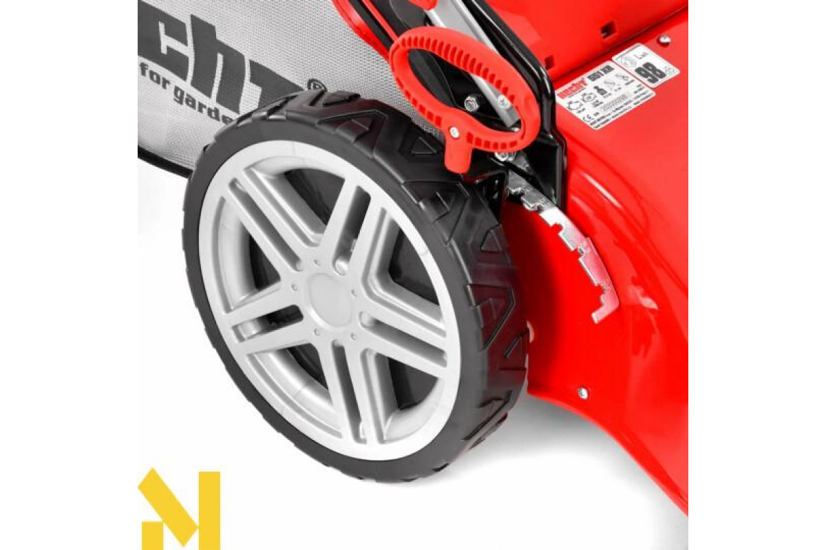 HECHT 551 XR - чудова садова косарка з приводом зі спеціальною функцією поворотних передніх коліс. Завдяки цьому можна легко обходити перешкоди в розрізнених садах, косити за округлими сучасними клумбами тощо. Передні колеса можна зафіксувати в прямому положенні, тоді ви можете косити нею, як і будь-якою іншою звичайною косаркою.