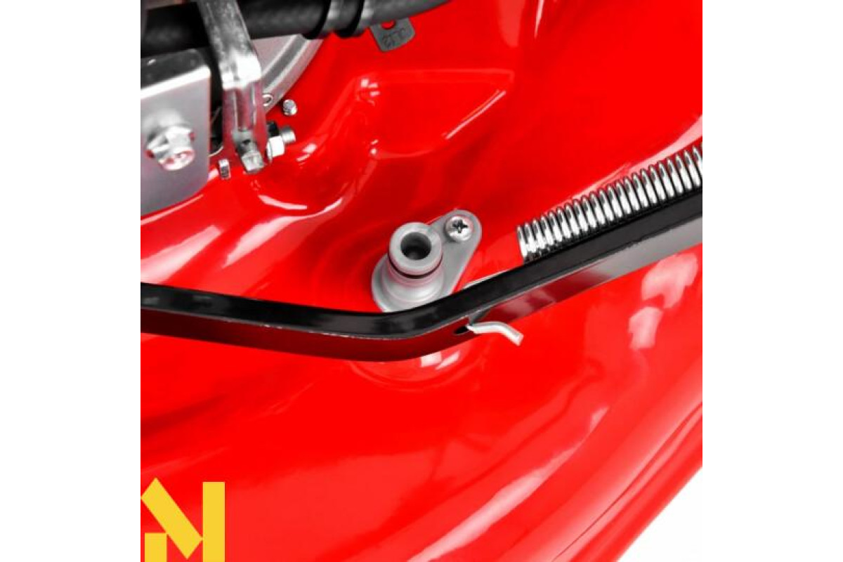 Хоча косарка має дуже міцну конструкцію, вона важить лише 37,3 кг. Крім того, косарка оснащена приводом. Просто натисніть на важіль, і косарка запуститься сама. Тому оператору не потрібно штовхати косарку, і робота не така напружена.