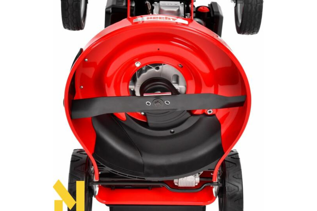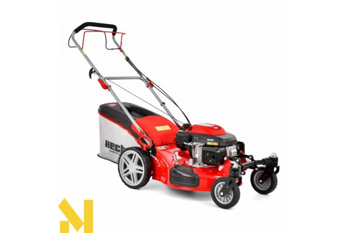 Для приводу косарки використовується чотиритактний двигун внутрішнього згоряння Hecht об'ємом 196 см3 і потужністю 3,5 кВт. Міцне шасі косарки виготовлено з міцного пластику. Радіус сталевого ножа становить 51 см, тому косарка ідеально підходить для скошування великих садів площею до 1500 м2.