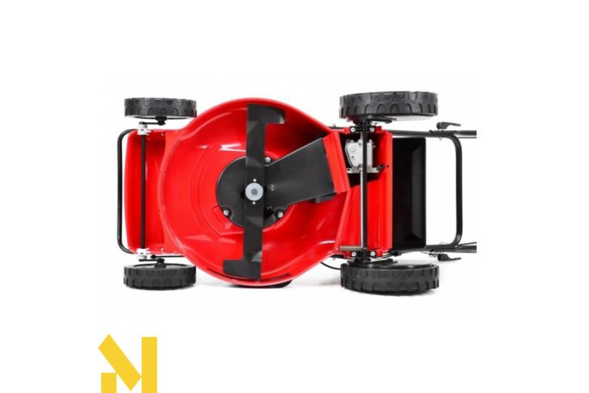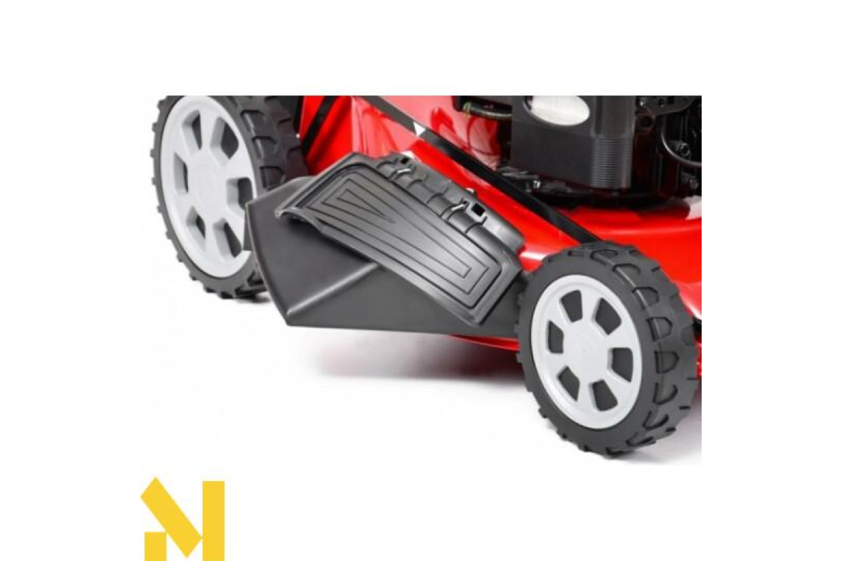 - Великі колеса на підшипниках захищають траву і забезпечують комфортне косіння