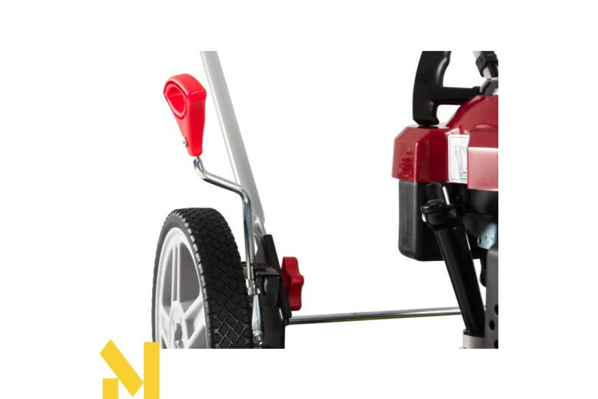 Швидке та просте регулювання висоти скошування досягається за допомогою одного важеля зі зручною рукояткою. Висоту скошування можна регулювати від 2,5 до 7,5 см.