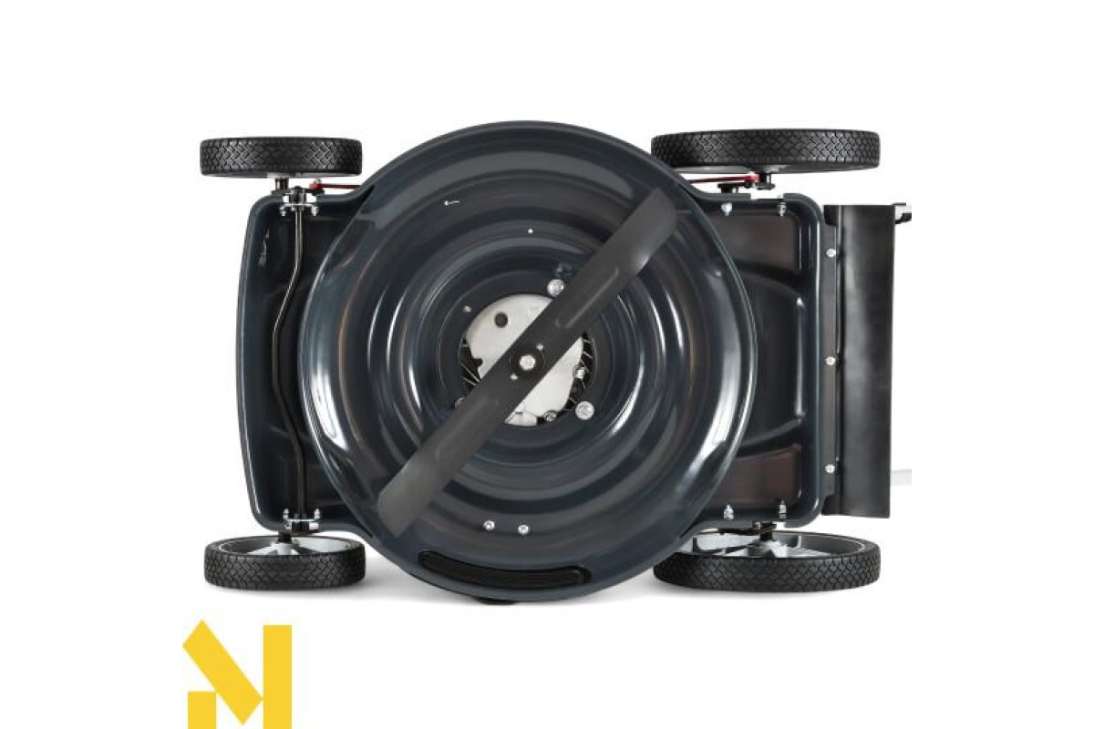Це фундаментальний елемент, який визначає якість роботи газонокосарки та комфорт користувача. Корпус виготовлений з товстого сталевого листа. Його форма та бічне тиснення забезпечують виняткову жорсткість, що призводить до стабільної та точної роботи. Корпус повністю захищений від корозії та покритий порошковою фарбою, що гарантує тривалий термін служби навіть у складних умовах.