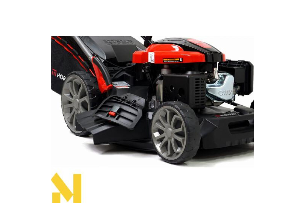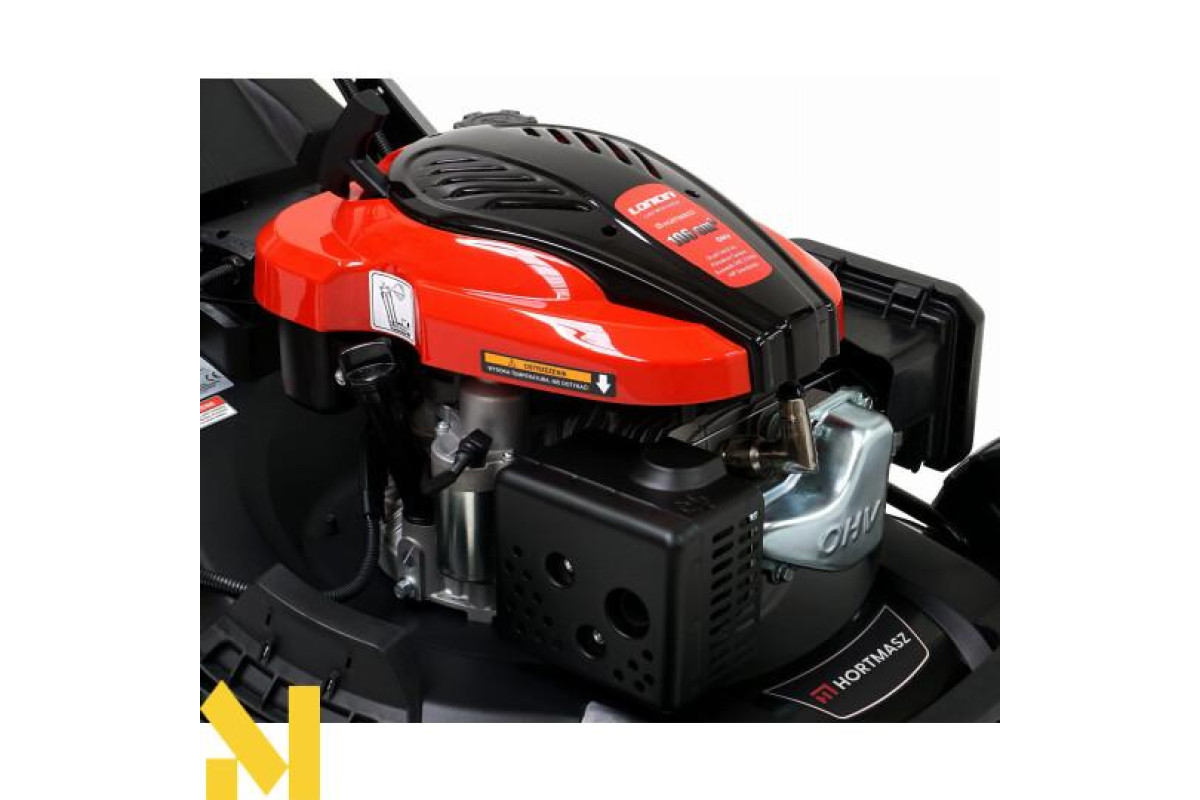 HORTMASZ HKS LX 553 NE L196 – це сучасна самохідна бензинова газонокосарка, оснащена двигуном Loncin V200 об'ємом 196 куб. см та потужністю 4,8 к.с. Поєднання локомотива та акумуляторного стартера робить запуск газонокосарки простим та зручним за будь-яких умов. Ширина скошування 53 см та металевий привід роблять пристрій придатним як для великої, так і для нерівної місцевості. Центральне регулювання висоти (від 2,5 до 7,5 см) та міцний сталевий корпус забезпечують комфорт та точність.