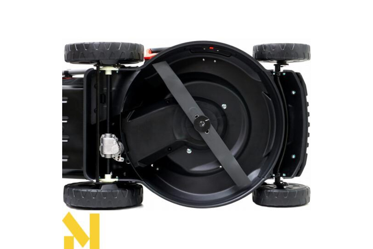 Газонокосарка оснащена акумуляторним стартером та ручним стартером. Якщо ви забудете зарядити акумулятор і не матимете часу, ви можете запустити газонокосарку традиційним способом за допомогою ручного стартера. Акумуляторний стартер живиться від сучасного літієвого акумулятора, який характеризується низьким саморозрядом, відсутністю ефекту пам'яті та тривалим терміном служби.