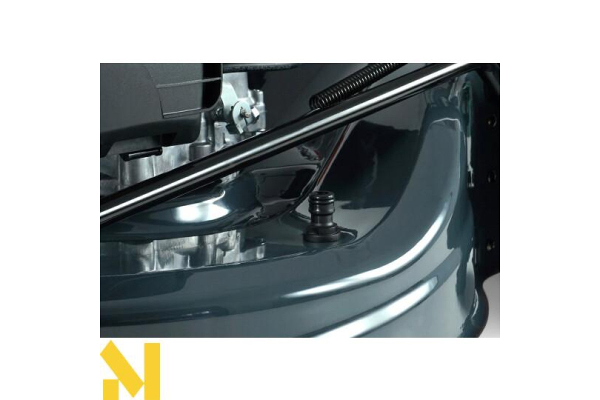 Система очищення декидозволяє швидко та легко очистити внутрішню частину деки газонокосарки. Просто підключіть садовий шланг до швидкоз'єднувального з'єднання на деці та запустіть двигун. Пристрій очищається самостійно, коли лезо обертається, а потім потрапляє під потужний струмінь води.