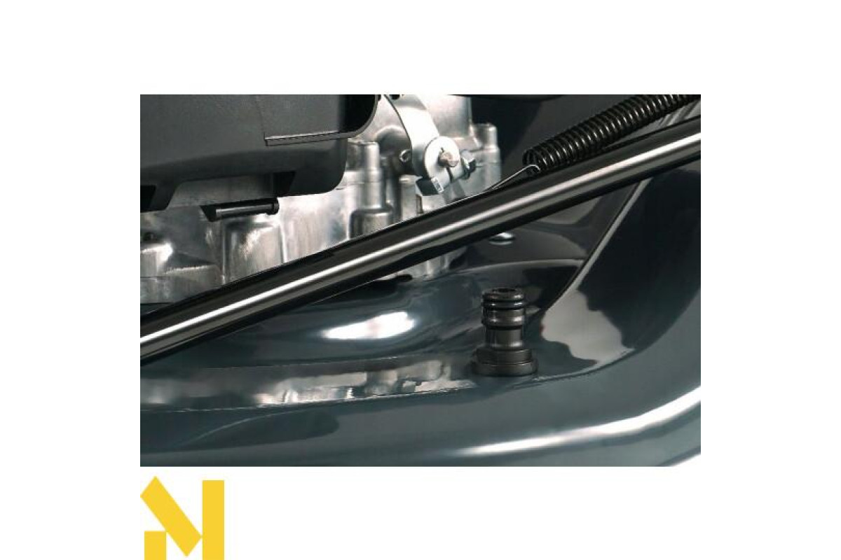 Система очищення декидозволяє швидко та легко очистити внутрішню частину деки газонокосарки. Просто підключіть садовий шланг до швидкоз'єднувального з'єднання на деці та запустіть двигун. Пристрій очищається самостійно, коли лезо обертається, а потім потрапляє під потужний струмінь води.