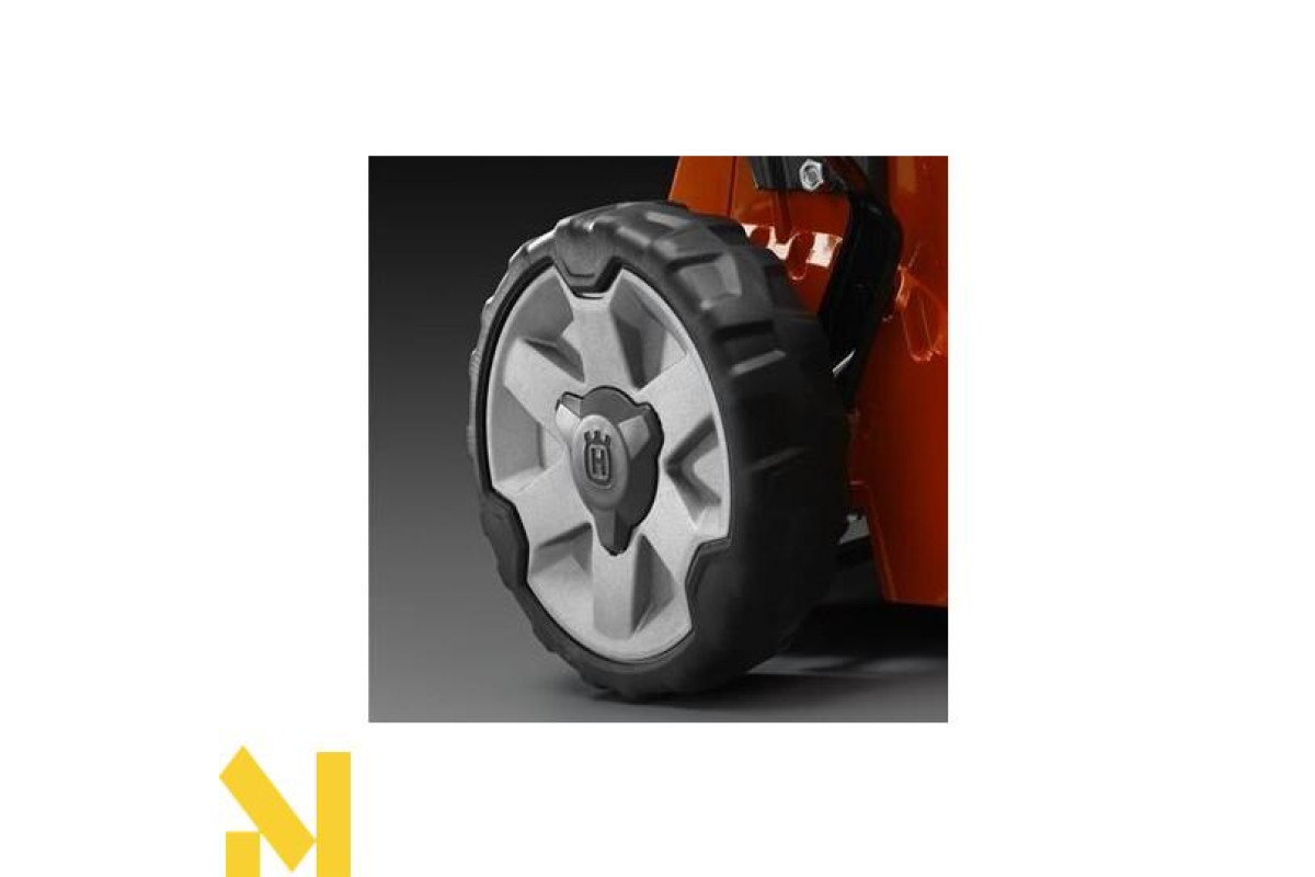 - Гумові шини зі збільшеною висотою протектора забезпечують краще зчеплення з землею і відсутності смуг на газоні