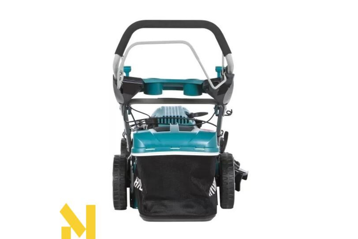 4-тактний бензомотор з верхнім розташуванням клапанів відрізняється значним моторесурсом, стійкістю до тривалим операціями, мінімальним рівнем вібрації. Механізм показує високий крутний момент, що дозволяє продуктивно косити різні сорти газонних трав і ділянки з великою кількістю бур'янів.