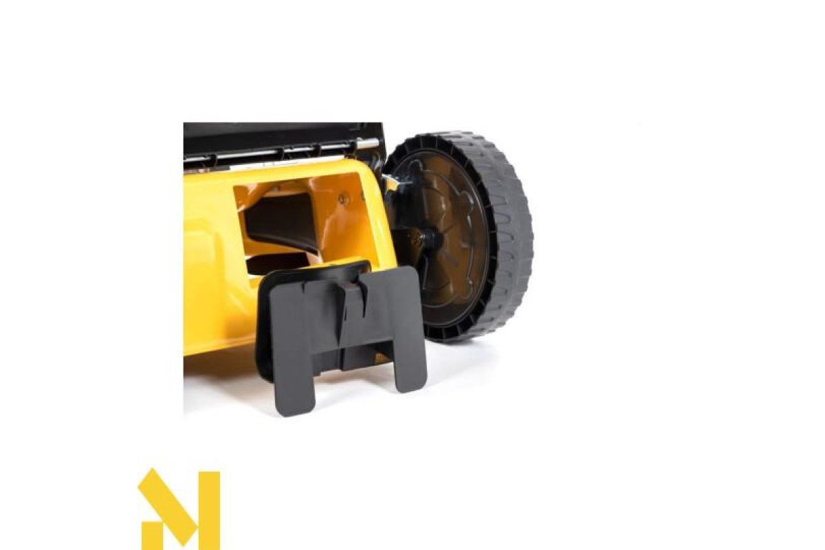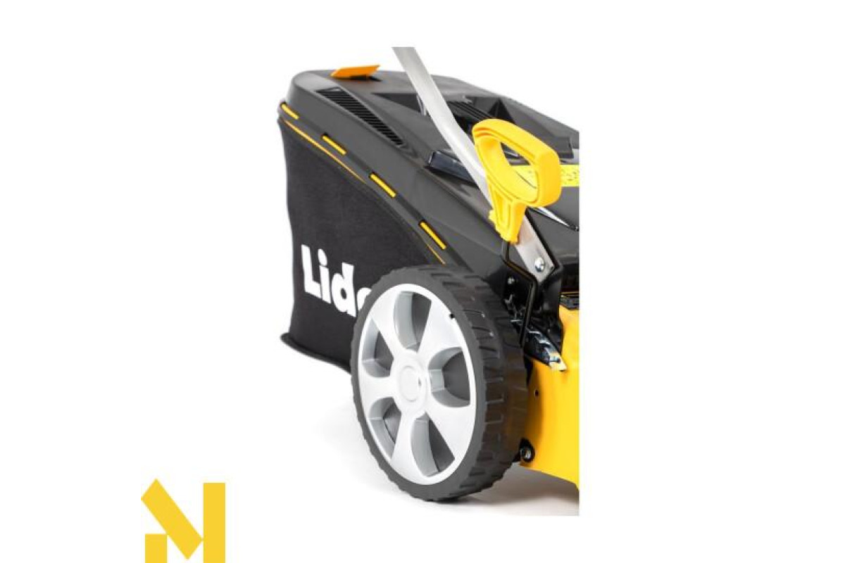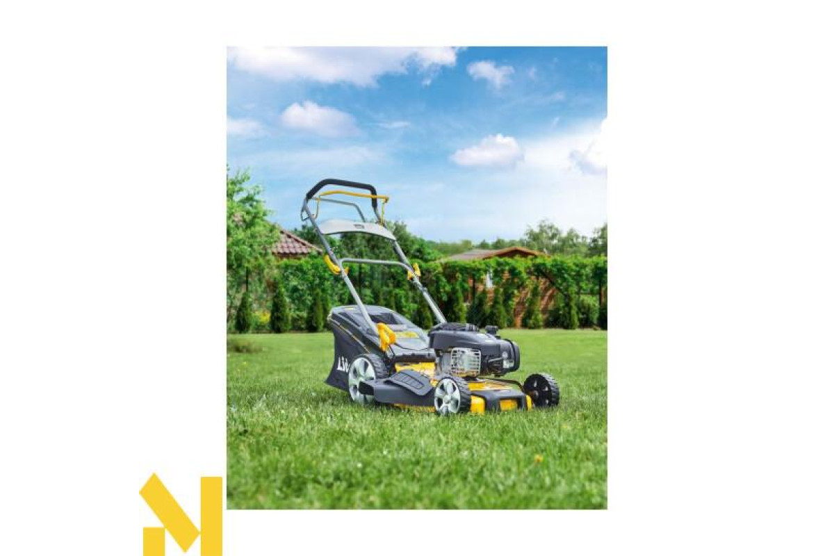 Бензинова газонокосарка зрізає траву лезом, розташованим на нижній стороні пристрою, що обертається з високою швидкістю паралельно ріжучої площини. Ніж рухається 4-тактним двигуном внутрішнього згоряння від відомої компанії Briggs & Stratton. Косарка оснащена 4 великими колесами з підшипниками (задні провідні колеса) та запобіжним важелем. Скошена трава може бути зібрана у велику корзину з індикатором заповнення або висипатися з-під машини через бічний викид. Пристрій має центральне 8-ступінчасте регулювання висоти стрижки. Агрегат також може подрібнювати траву, якщо встановлена заглушка для подрібнення.