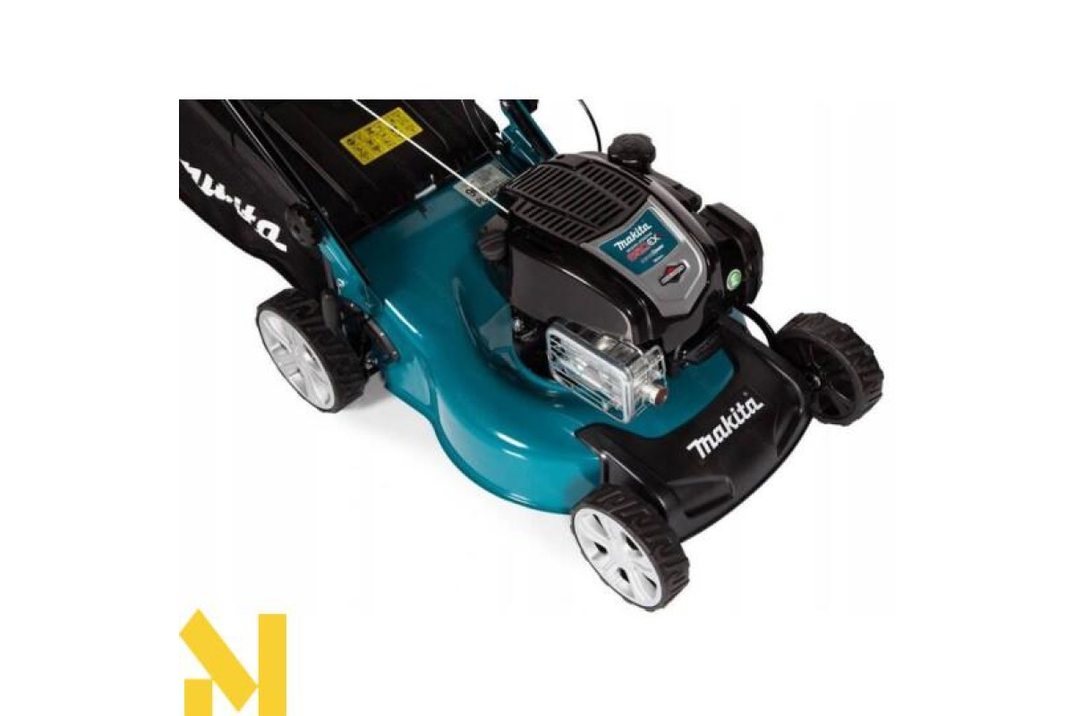 Бензинова газонокосарка японського виробника Makita PLM4621N2 краще рішення для підтримки зеленого килима в бездоганному стані. Модифікація рекомендована для косіння до 14 соток за один цикл роботи.