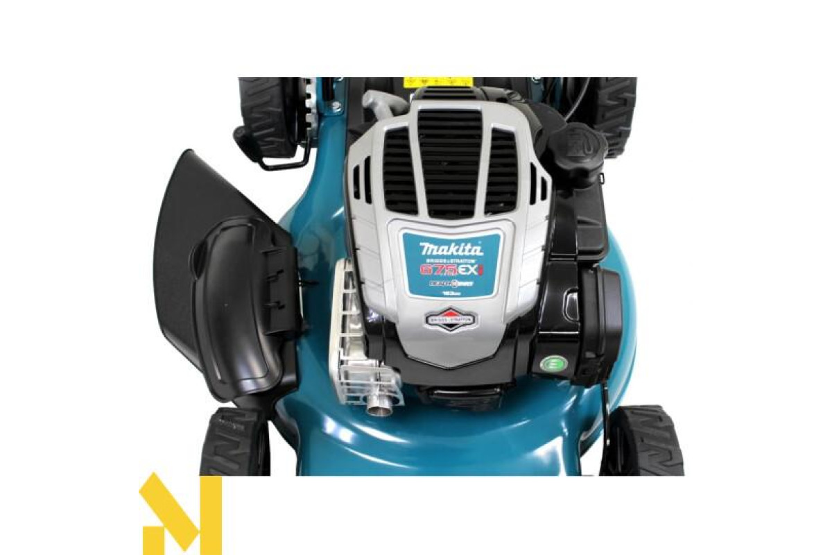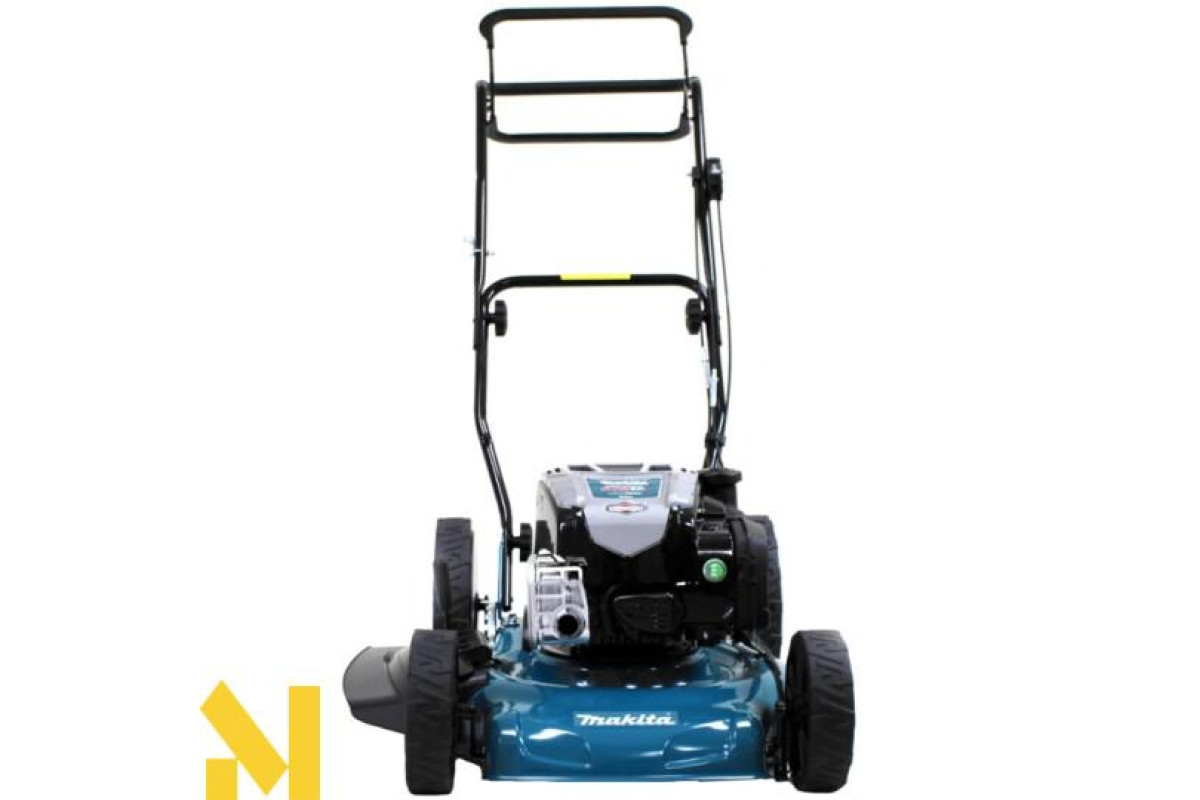 Газонокосарка Makita PLM5121N2 c високопродуктивним чотиритактним двигуном B&S 675EXi ReadyStart 163 см3 забезпечує надійну безвідмовну роботу. Ріжучий ніж з'єднаний з валом двигуна через муфту ковзання, що дозволяє уникати пошкодження двигуна при ударах ножем об тверді предмети. Газонокосарка виконує скошування і викид трави в сторону, або мульчування. Оснащена приводом на колеса. Вона неспішно переміщається по ділянці (власнику потрібно лише спрямовувати її). Великі колеса на підшипниках гарантують плавний хід. Рукоятка газонокосарки складається, що забезпечує зручність транспортування і зберігання. Модель розрахована на площу 2200 кв.м.