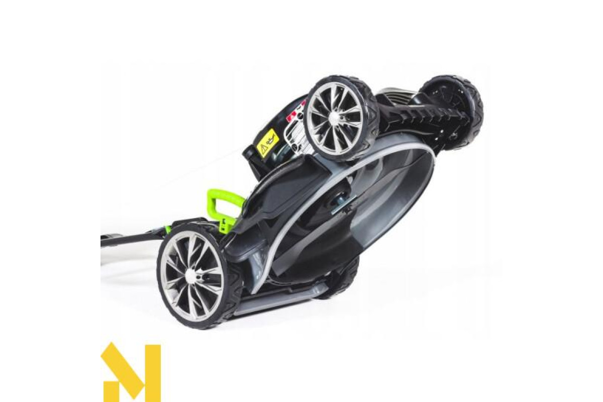 Колеса зі сталевими підшипниками – опір коченню зведено до мінімуму. Задні колеса діаметром 28 см полегшують керування газонокосаркою на складній місцевості. Розмір передніх коліс – 20 см.