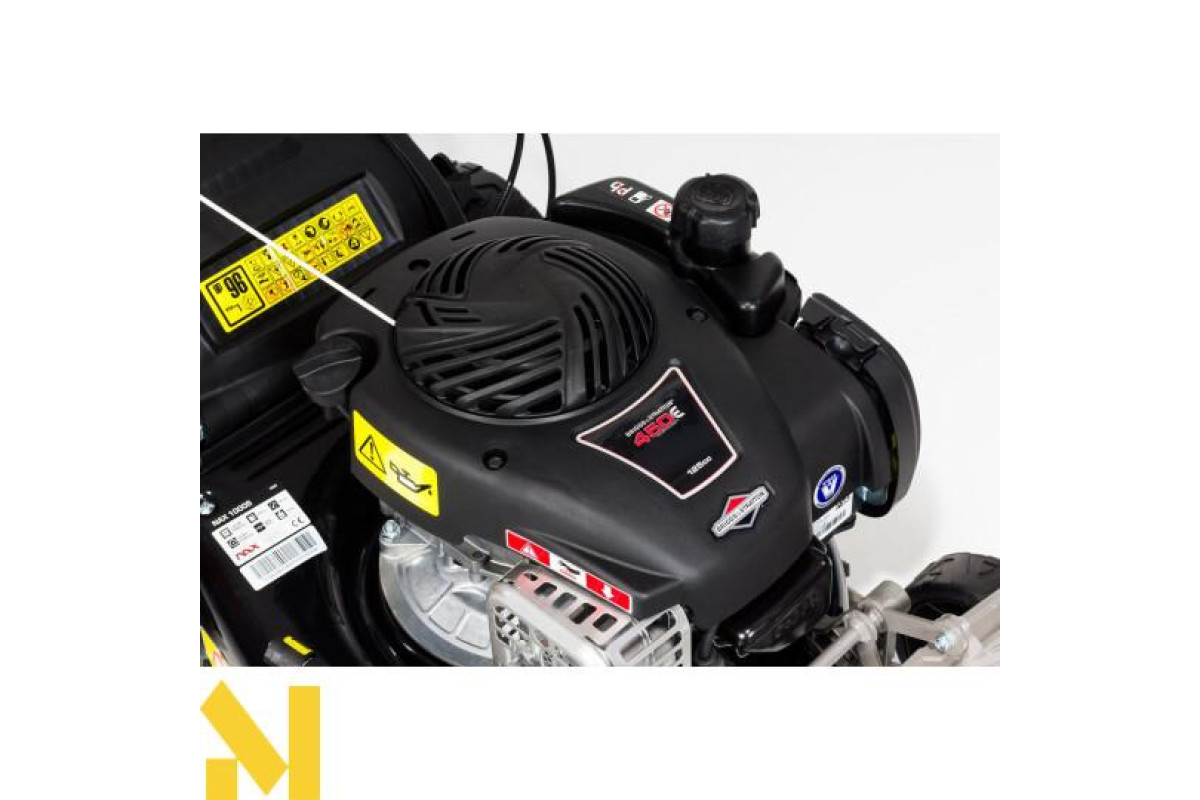 Бензинові газонокосарки NAX - надійні пристрої, корисні для кожного власника саду. Кожна бензинова газонокосарка NAX оснащена двигуном Briggs & Stratton - найбільшого виробника двигунів для газонокосарок. Двигун серії 450E - це міцний і ефективний приводний агрегат з об'ємом 125 см3 і крутним моментом 5,9 Нм.