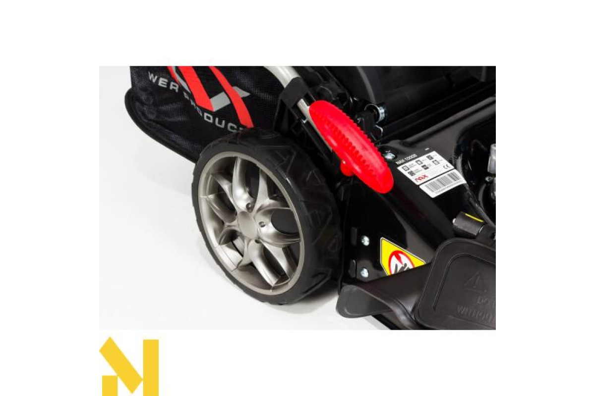 Самохідна газонокосарка NAX 1000S гарантує комфортну роботу завдяки використовуваним інноваційним рішенням. Вона оснащена поворотними передніми колесами, що значно полегшує маневрування газонокосаркою та об'їзд перешкод. Ці колеса також можна заблокувати, і тоді газонокосарка рухатиметься прямо вперед. Також можливо розгортати газонокосарку на 360 градусів на місці.