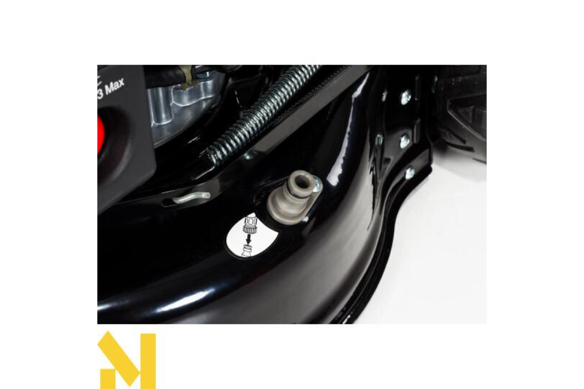 Газонокосарка NAX 1000S має травозбірник об'ємом 45 літрів із пластиковою пилозахисною кришкою та індикатором заповнення. Користувачі також оцінять 6-ступінчасте регулювання висоти скошування - від 25 до 75 мм. Газонокосарка оснащена системою промивання корпусу, яка дає змогу легко і швидко мити корпус зсередини. Для цього під'єднайте садовий шланг із водою до швидкороз'ємного з'єднання на корпусі та запустіть двигун. Ергономічні ручки газонокосарки оснащені регулюванням висоти, що дає змогу підганяти висоту під зріст користувача.