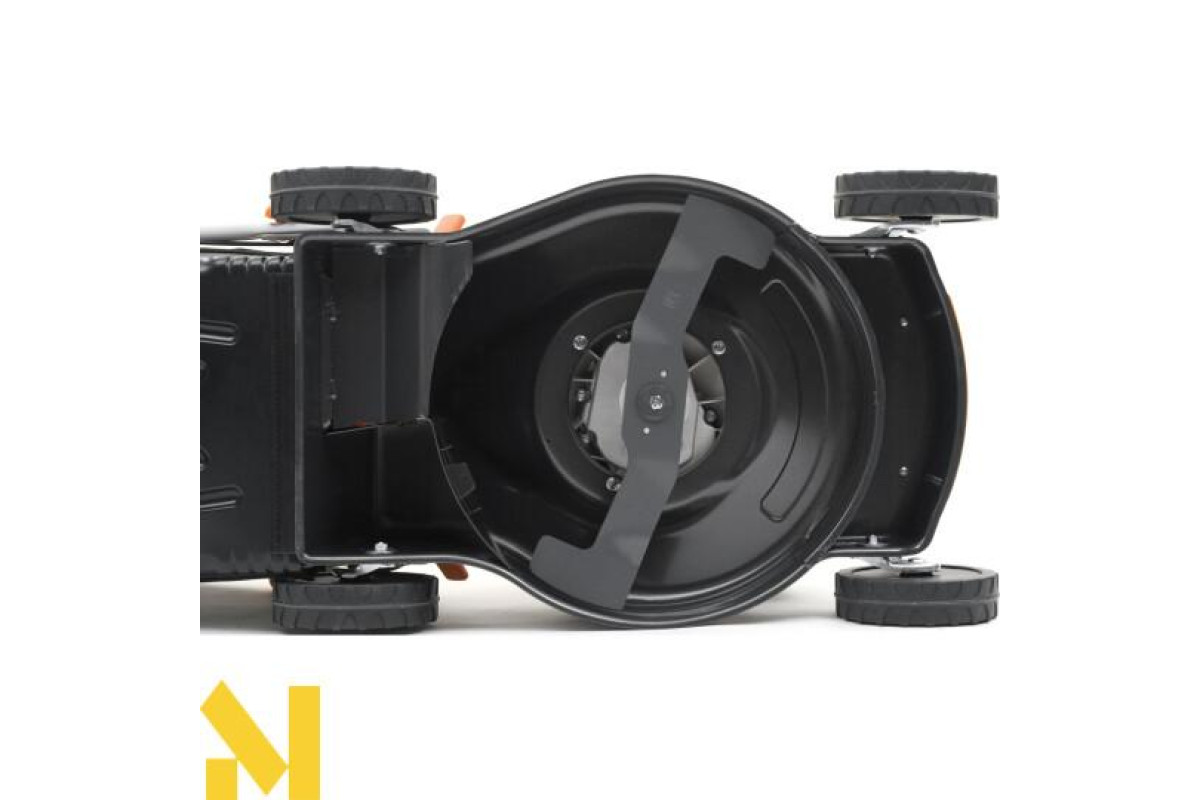 Висота зрізу є незалежною і регулюється на кожному колесі в 4 положеннях за допомогою ергономічних важелів. Ергономічний важіль гальма двигуна забезпечує міцний хват і зручне приведення в дію.